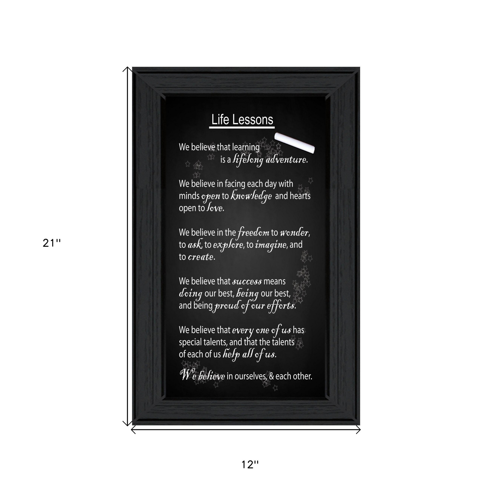 Add an air of fashion to your room and rejuvenate the space with this life lessons 2 black framed print wall art. This print is a visual artistic expression that allows you to decorate your space in style. Reproduced for you on paper, this hanging decorative accent will be a trendy and fashionable way to dress your walls. Adding this hanging wall art to your space to make your room feel more finished and attractive. Instantly liven up your space with this art that brings color and dimension to your walls. 21-inch H x 12-inch W x 1-inch D