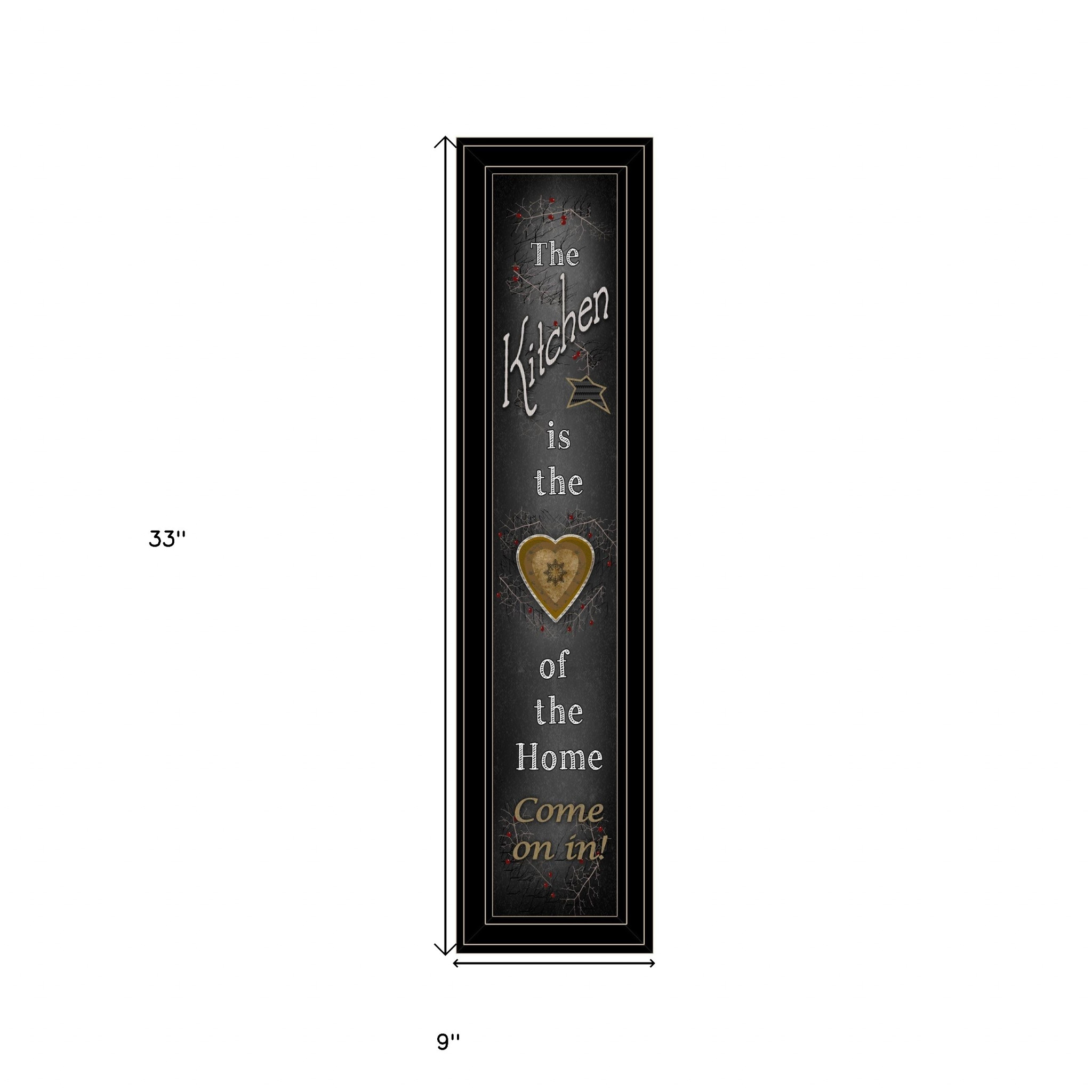Add an air of fashion to your room and rejuvenate the space with this chalkboard kitchen 4 black framed print kitchen wall art. This print is a visual artistic expression that allows you to decorate your space in style. Reproduced for you on paper, this hanging decorative accent will be a trendy and fashionable way to dress your walls. Adding this hanging wall art to your space to make your room feel more finished and attractive. Instantly liven up your space with this art that brings color and dimension to your walls. 33-inch H x 9-inch W x 1-inch D