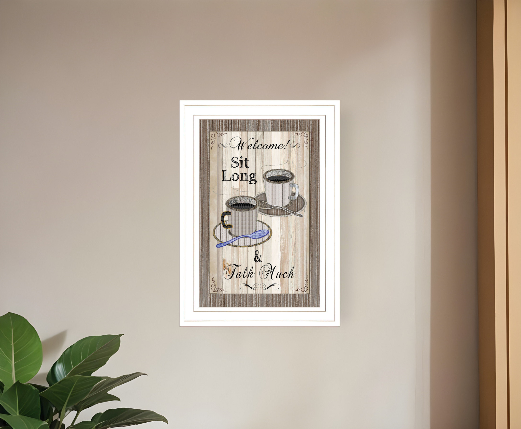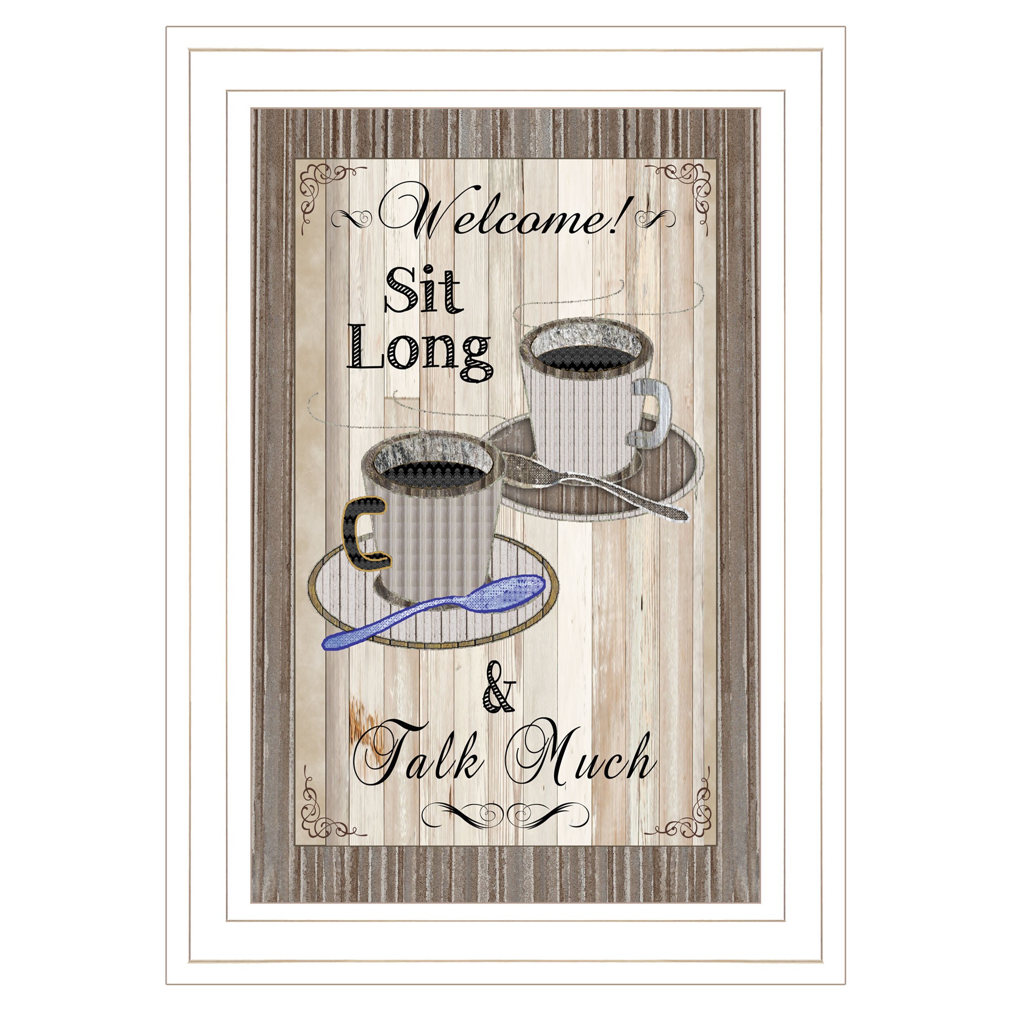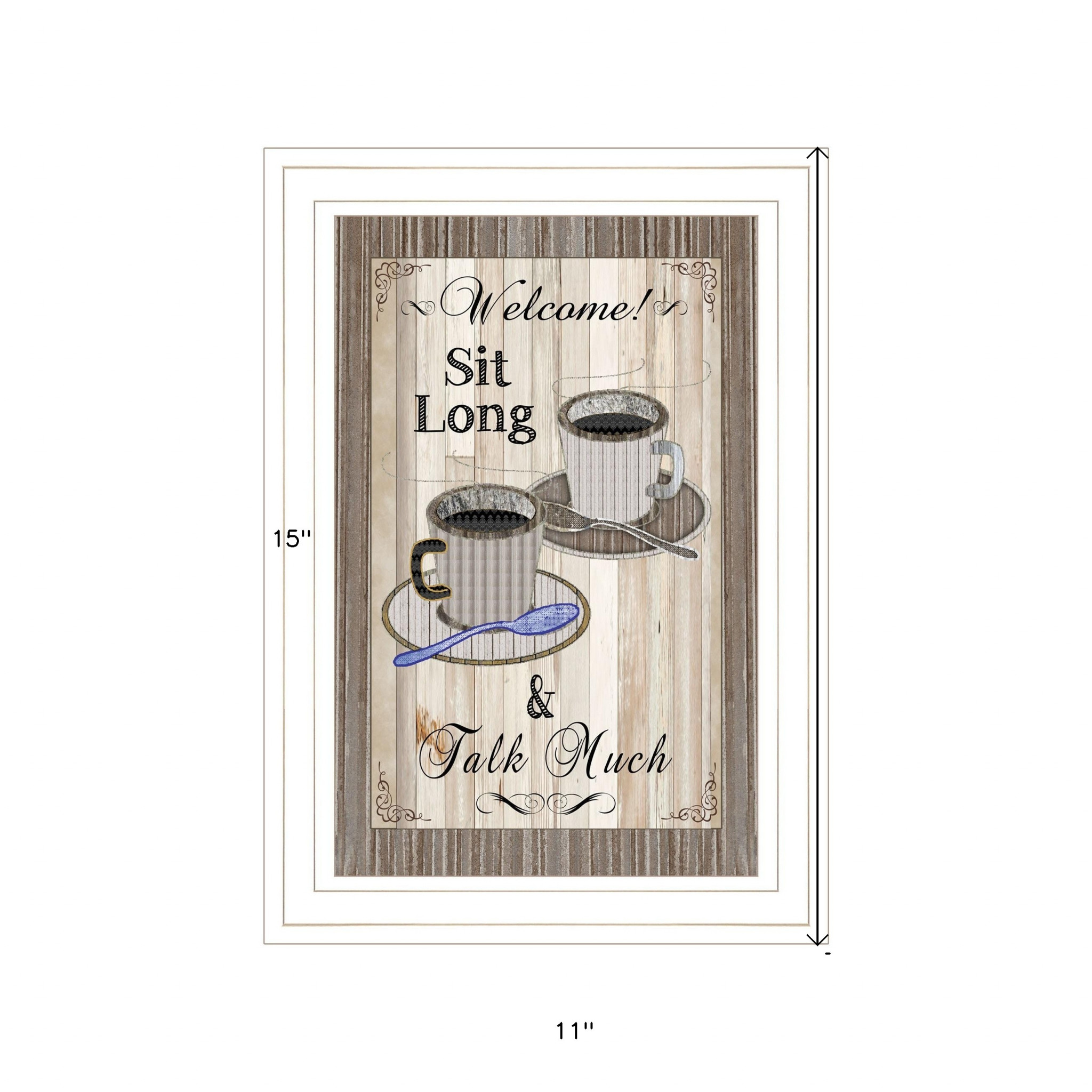 The sit long talk much 1 white framed print wall art is the perfect decorative accessory for your home. This print is a visual artistic expression that allows you to decorate your space in style. Reproduced for you on paper, this hanging decorative accent will be a trendy and fashionable way to dress your walls. Hang on your wall to add some up to date fashion and decoration. Utilize this opportunity to create a focal point in the room with this fabulous wall decor option. 15-inch H x 11-inch W x 1-inch D