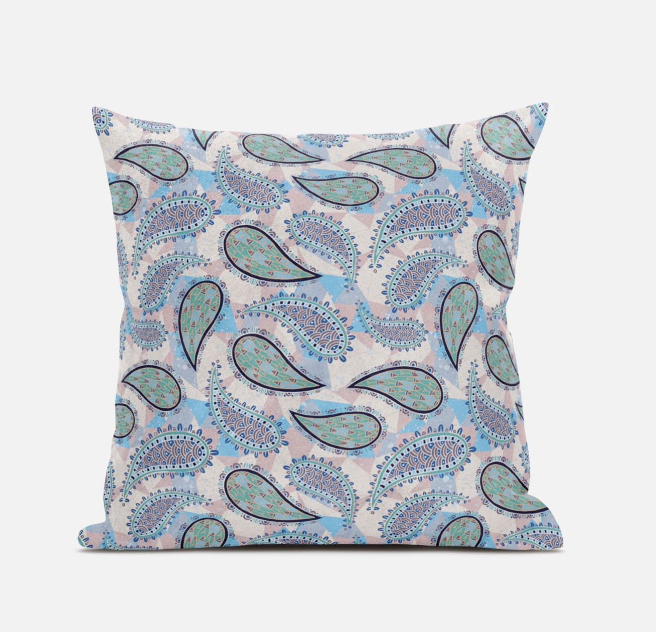 Embracing botanical patterns with a pastel palette, this ethereal Blue Green Boho Paisley Suede Throw Pillow radiates a breezy boho vibe. The muted green and blue paisley design is brimming all over the pale pink base creating a stunning visual display of colors to add a sense of serenity to your living space. The sleek and smooth suede fabric’s presence provides this cushion with a sumptuous and opulent look while ensuring long-lasting durability to serve you in the coming years with satisfaction. Featuring a soft polyfill insert, this blown and closed throw pillow is very super fluffy, comfortable, and cuddly. Bring a sense of tranquility and harmony into your living room with this beautifully designed throw pillow flaunted amidst your boho-chic decor. 18” x 18” x 5”