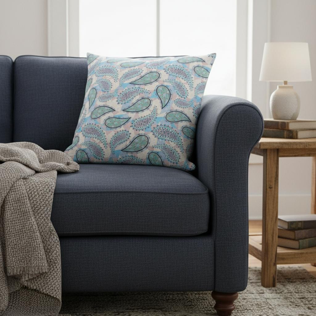 boho paisley suede throw pillow, 18 blue green boho paisley, paisley suede throw pillow, blue green boho paisley suede, green boho paisley suede throw |