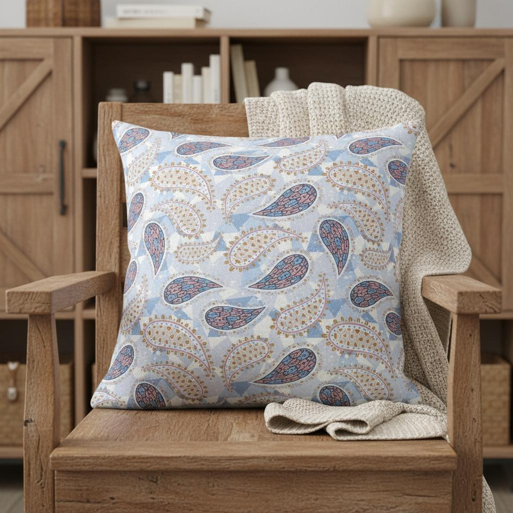boho paisley suede throw pillow, 16 blue pink boho paisley, paisley suede throw pillow, blue pink boho paisley suede, pink boho paisley suede throw |