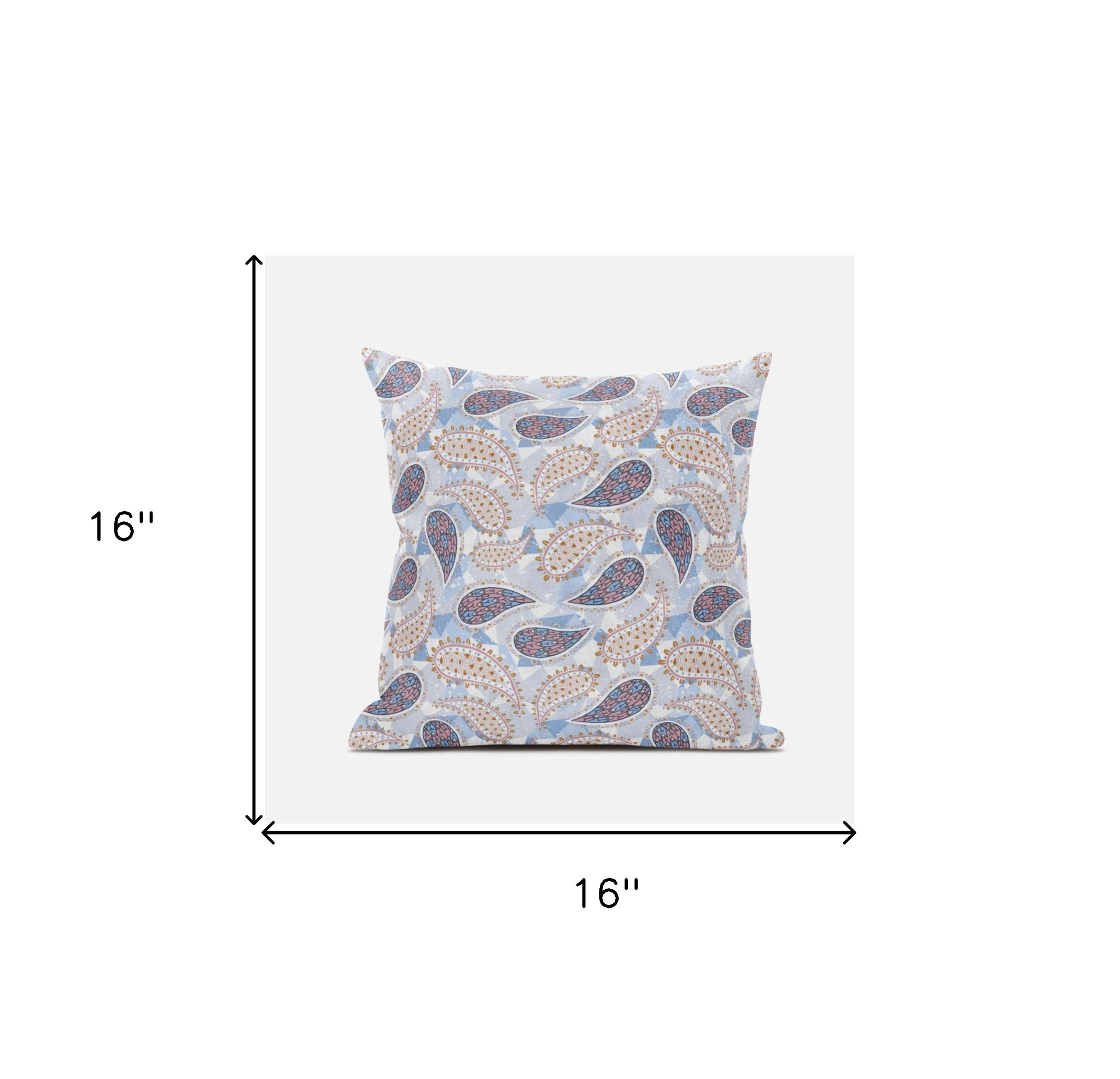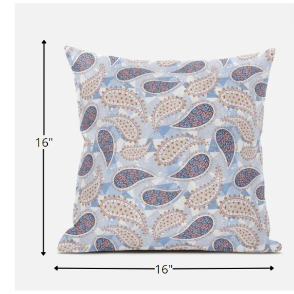 Combining botanical patterns with cool-toned hues, this eclectic Blue Pink Boho Paisley Suede Throw Pillow is sure to add a bohemian panache to your contemporary abode. The alluring paisley patterns create a harmonious medley of peachy pink tones over the soft blue geometric base for an eye-soothing appeal. The blown pillow is carefully crafted with a premium suede fabric that gives it a feel of luxury while also being functional for everyday use. The plush look and fluffy nature come from the regular polyfill insert that provides a comfortable platform for your head and neck to maximize relaxation. Complement the modern aesthetics of your home with this quintessential boho throw pillow to induce an ambiance tailored to elegance. 16” x 16” x 5”