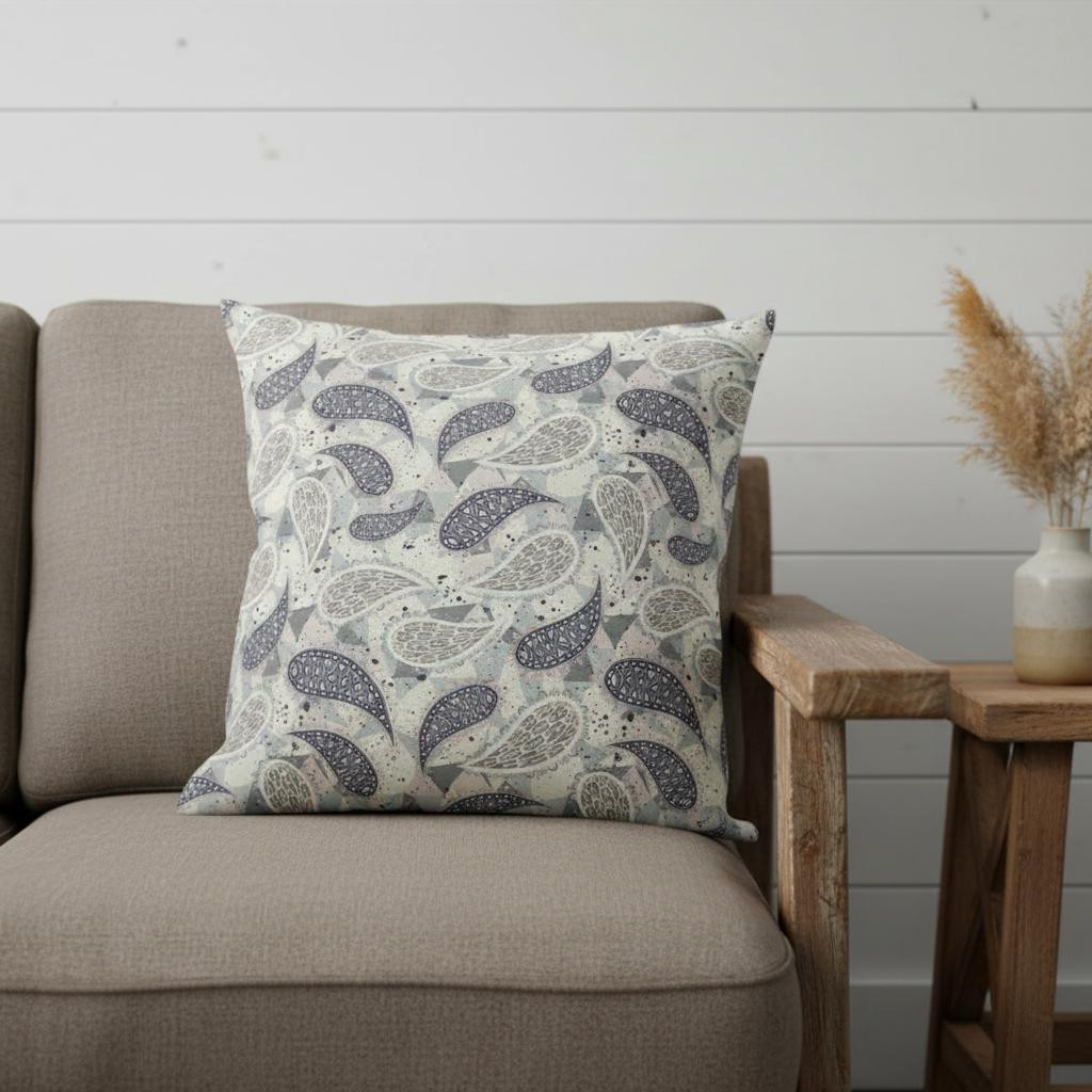 boho paisley suede throw pillow, 20 gray cream boho paisley, paisley suede throw pillow, gray cream boho paisley suede, cream boho paisley suede throw |