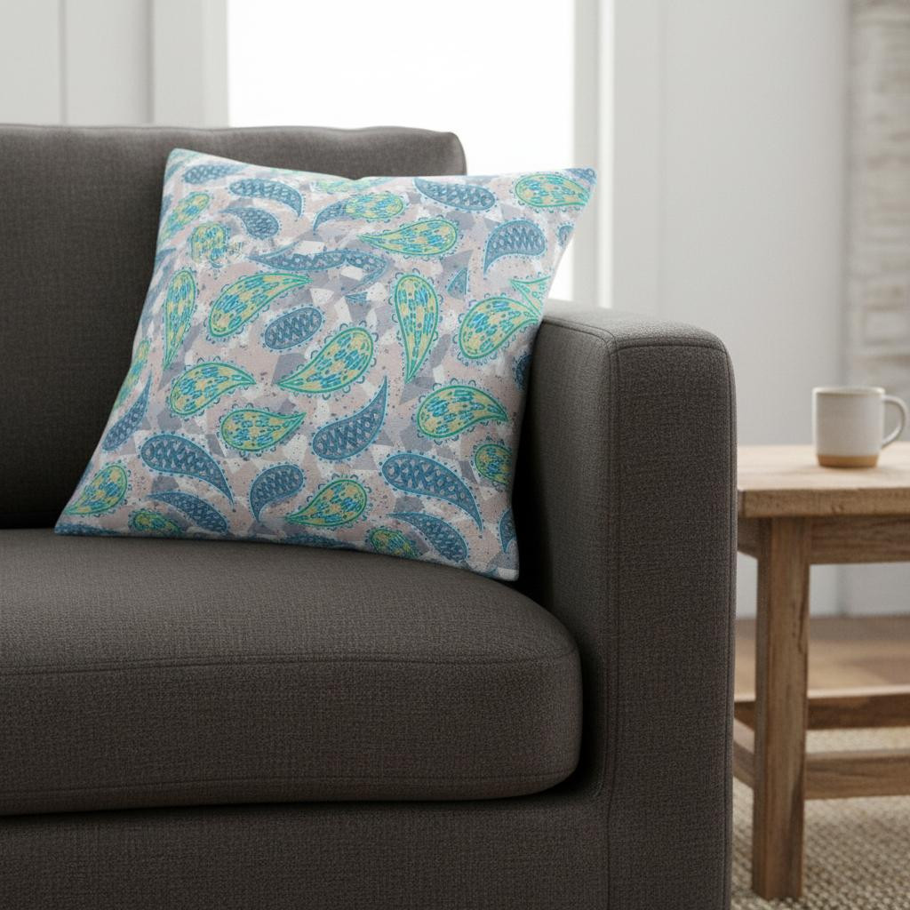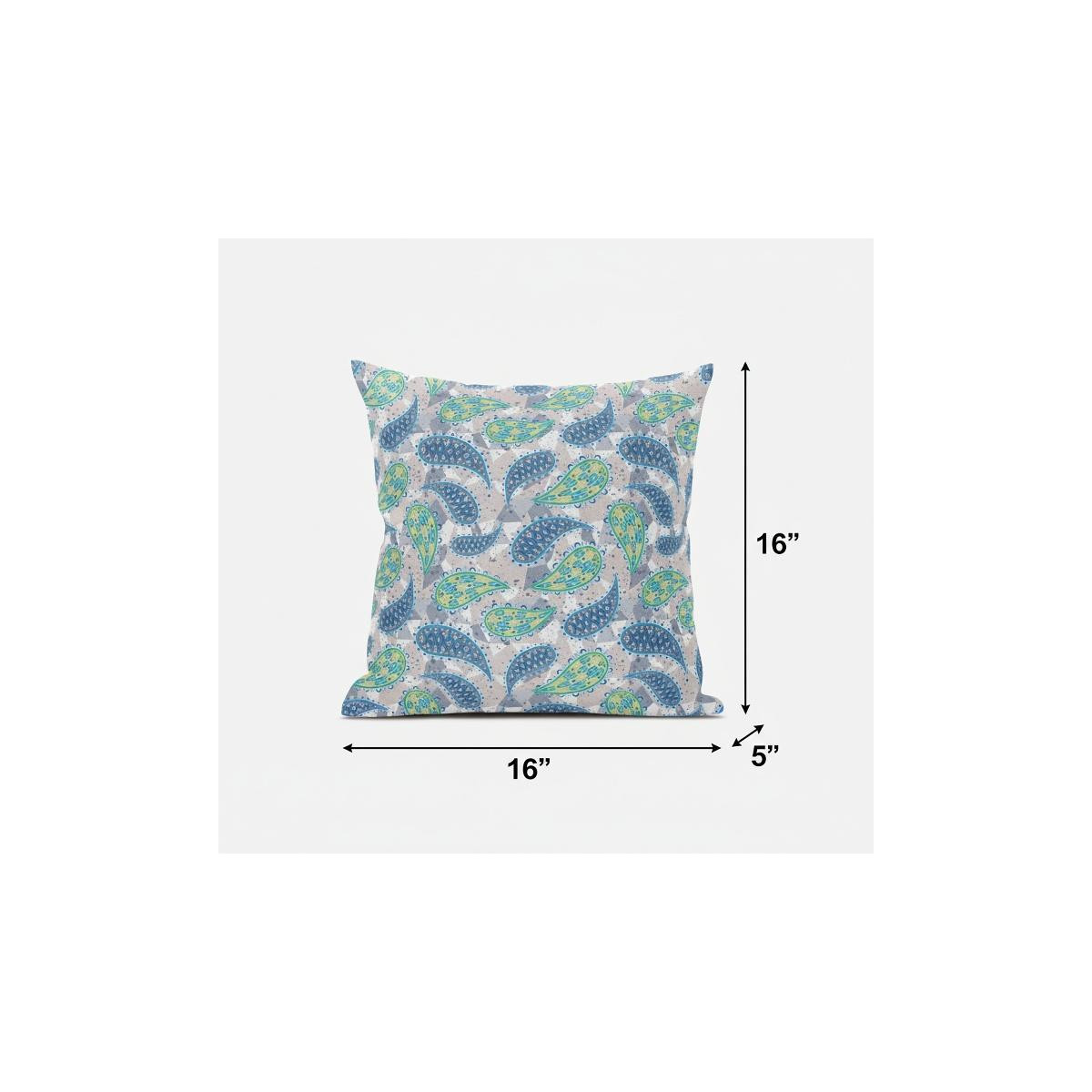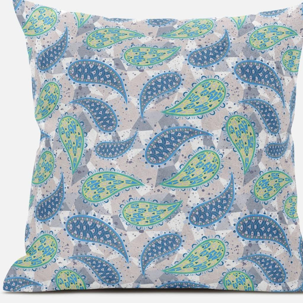 The relaxing hues of this Green Indigo Boho Paisley Suede Throw Pillow give it a cheerful boho flair perfect to complement the modern décor of your living room. Featuring shades of indigo blue and green against a muted gray background that creates the ideal medley of elegance and stylishness to fit any room. The delicate drape in suede fabric not only gives this pillow a luxuriously smooth finish with a lustrous appearance but also ensures durability to last for a long time while being easy to maintain. The soft polyfill insert offers a luxurious and cozy feel while giving a fluffy look to the pillow. For a pop of color in an otherwise neutrally decorated contemporary interior, this throw pillow works as a stunning accent piece bringing the essence of boho with it. 16” x 16” x 5”