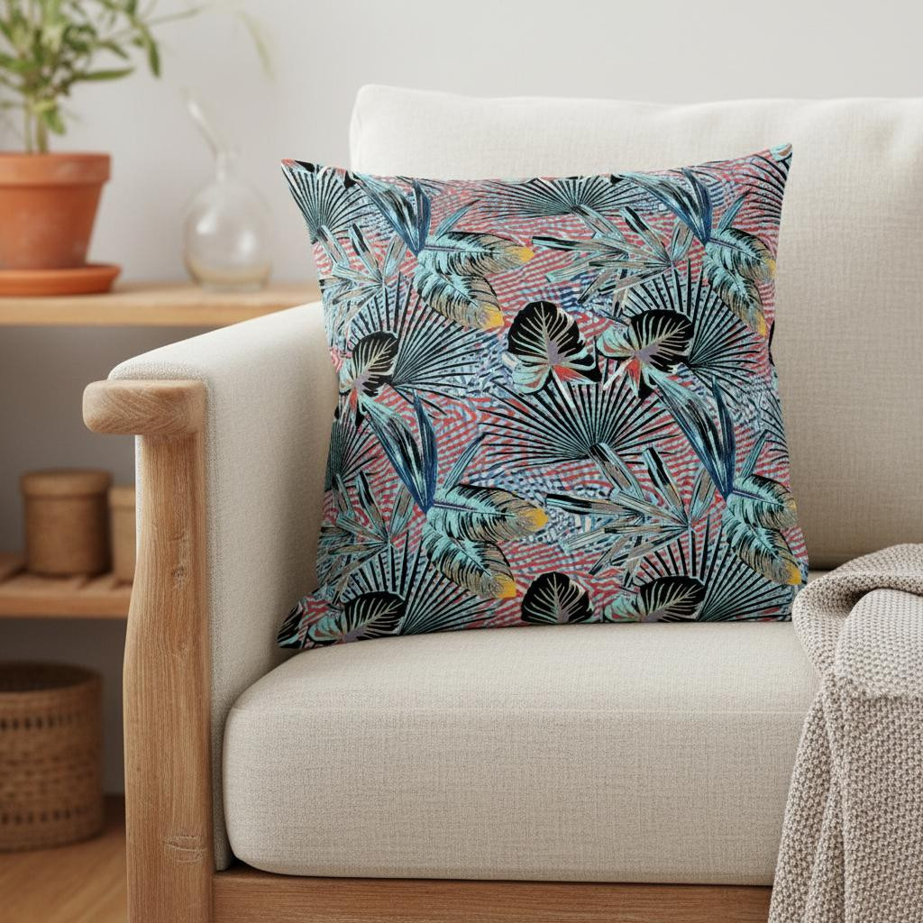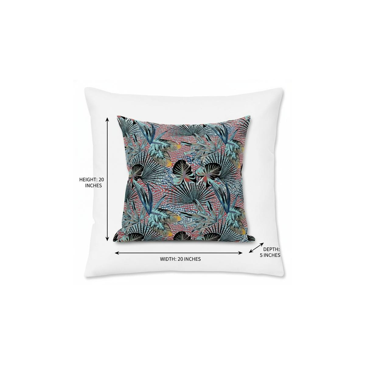 Emphasize a tropical essence into your living space with this stunning Aqua Red Tropical Suede Throw Pillow that features botanical elements to inspire positive energy and evoke a sense of relaxation in the room. The tropical leaves in aqua blue and tints of black create an eye-catching canopy over the gridded rosy red and soft blue base, meant to set a welcoming atmosphere in any costal, contemporary, or tropical home. The deluxe suede fabric featured on the throw pillow gives it a premium feel while also being durable to last for a long time. The versatile blown pillow is also soft to the touch, given its lush polyfill insert, making it super fluffy and comfortable. Bring home this decorative throw pillow to add pops of colors to your living room with a calm and comforting ambiance. 20” x 20” x 5”