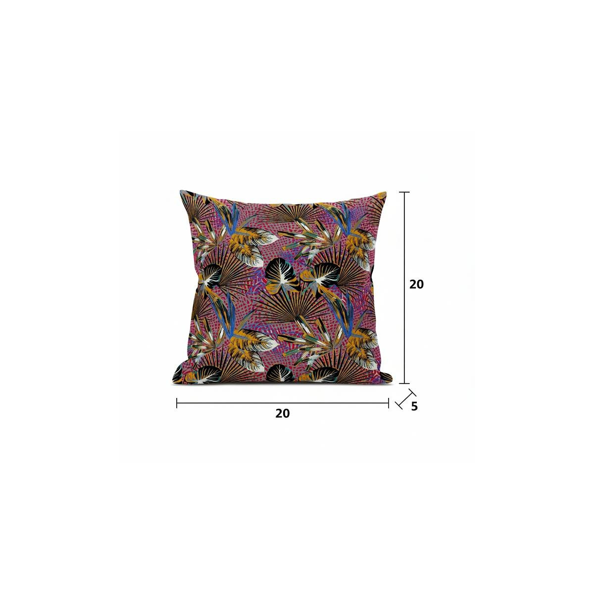 Make a statement leveraging your exalted sense of style with this highly chic Magenta Gold Tropical Suede Throw Pillow. Bursting with natural elements in popping shades of gold, black and hints of aqua blue fitting in effortlessly on a speckled magenta and soft-blue backdrop, this stunning piece snatches the attention of viewers no matter which room it’s placed. Made from high-quality suede fabric for enhanced durability and softness with a soft and smooth surface texture that feels luxurious on the touch. This pillow is blown and closed with a durable polyfill insert which gives the piece a plush and fluffy look, making it ideal for resting or sleeping with utmost comfort. The unique artistry of this lovely decorative pillow is fitting to uplift the tropical or coastal ambience of your décor. 20” x 20” x 5”