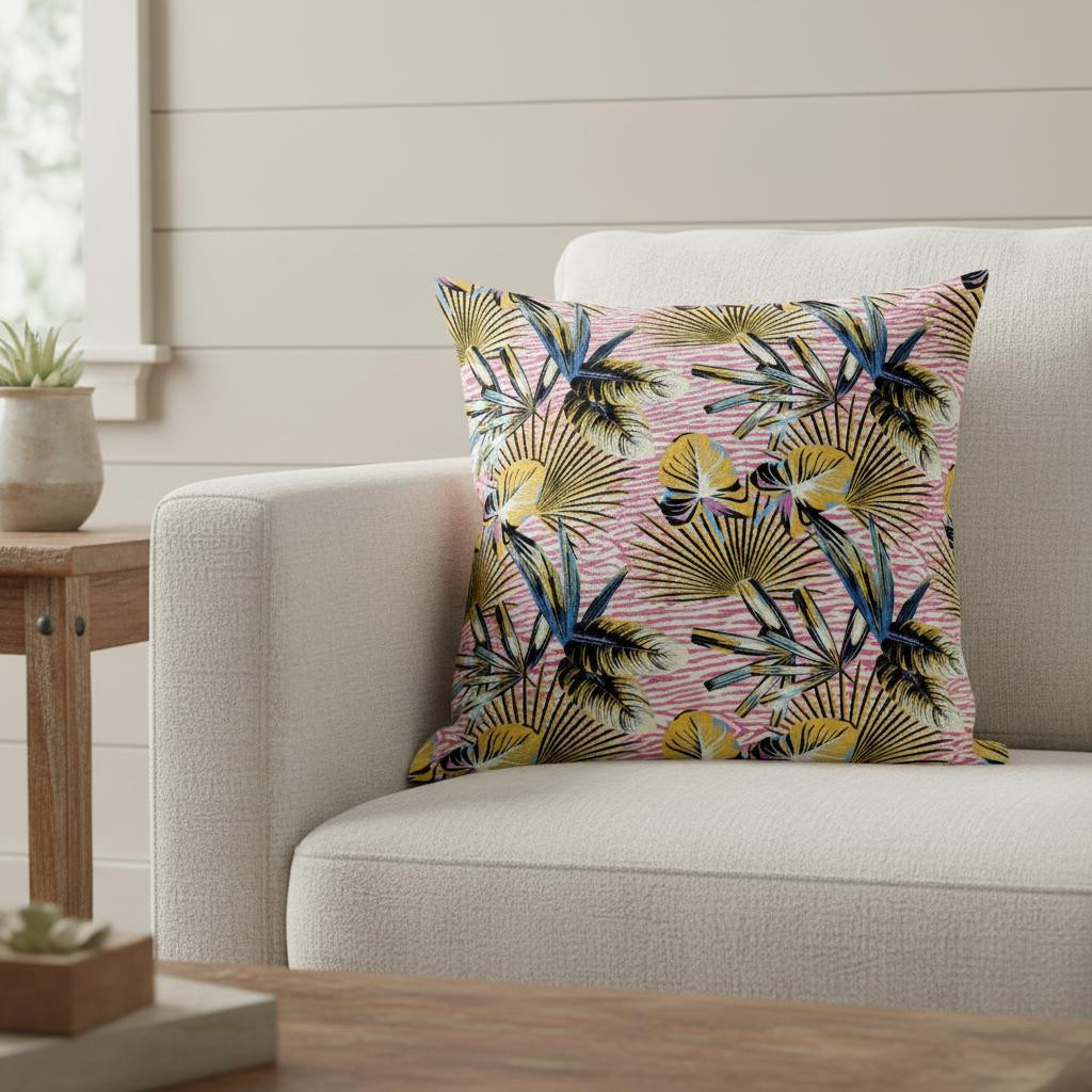 pink tropical suede throw pillow, 16 gold pink tropical suede, tropical suede throw pillow, suede throw pillow, gold pink tropical suede throw |