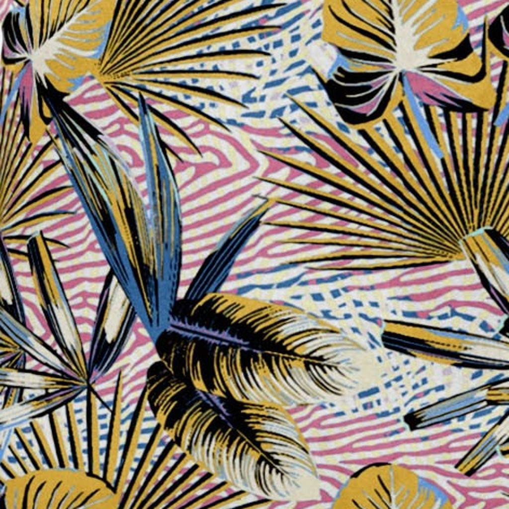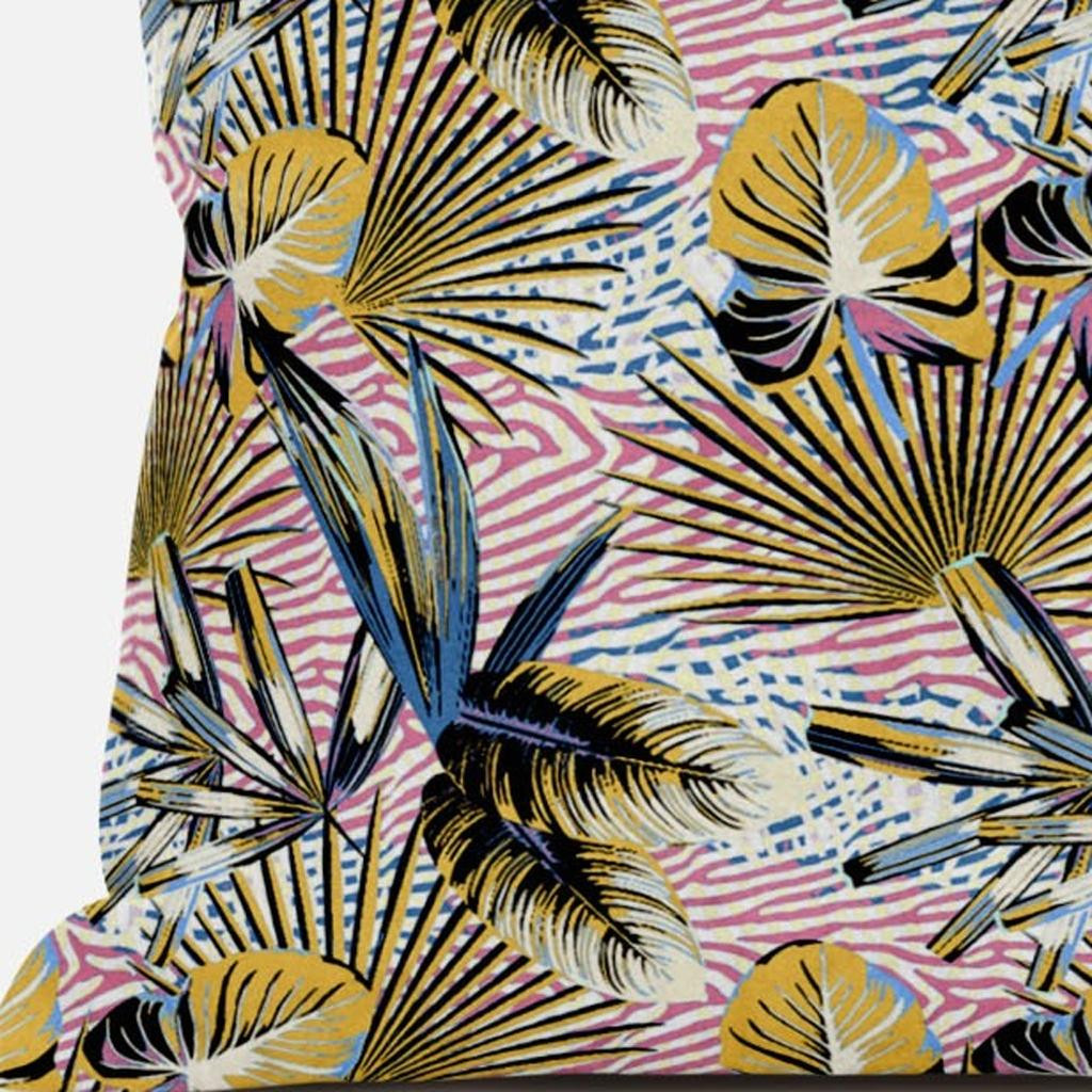 This gorgeous Gold Pink Tropical Suede Throw Pillow is sure to blend in a tropical spirit into your contemporary household while being an eye-catching centerpiece in the room. The mesmerizing botanical theme features leafage in faded gold, azure blue, and a touch of black over a zebra-print base in rose pink and white. This blown and closed pillow is crafted from premium-quality suede fabric which is characterized by its soft and smooth surface texture for a delicate feel. With a durable polyfill insert, this pillow feels super soft with a fluffy look that makes it an excellent decorative accent in terms of fashion and functionality. If a fusion of trend, comfort and boho-chic style is what you’re looking for, this one-of-a-kind decorative pillow will be right up your alley. 16” x 16” x 5”
