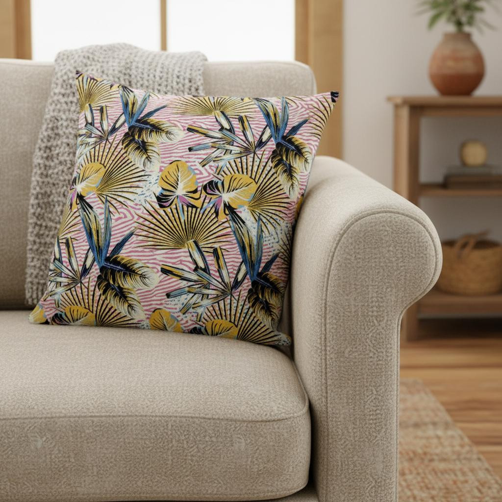 pink tropical suede throw pillow, 20 gold pink tropical suede, tropical suede throw pillow, suede throw pillow, gold pink tropical suede throw |
