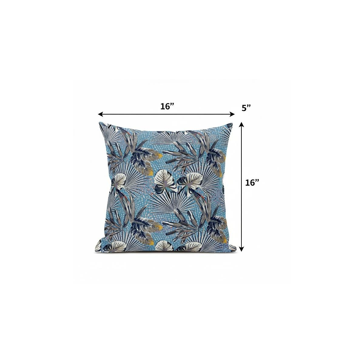 Bring the subtle air of the ocean and the carefree nature of a bohemian style into your abode with this Gray Blue Tropical Suede Throw Pillow. Brimming with lush foliage in gray, white, and pinch of yellow to create a pleasant contrast over the soft blue base that gives an illusion of an open sky hidden by a canopy of tropical leaves. This blown pillow is crafted from premium-quality suede fabric which is characterized by its soft and smooth surface texture for a delicate feel. With a durable polyfill insert, this pillow feels super soft with a fluffy look that makes it an excellent decorative accent in terms of fashion and functionality. If you want a splash of color amidst your neutral contemporary decor, opt for this throw pillow to evoke the tranquility of coastal shores and fill the room with a cheerful tone. 16” x 16” x 5”