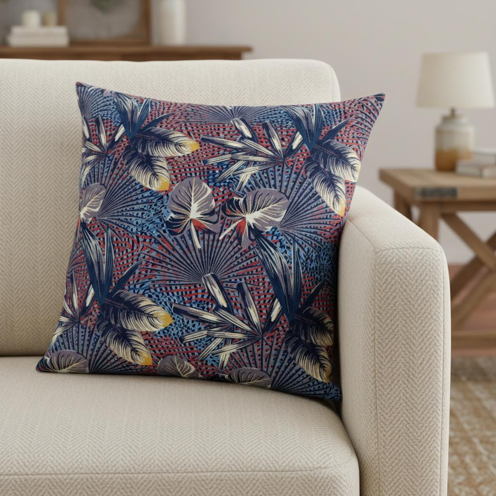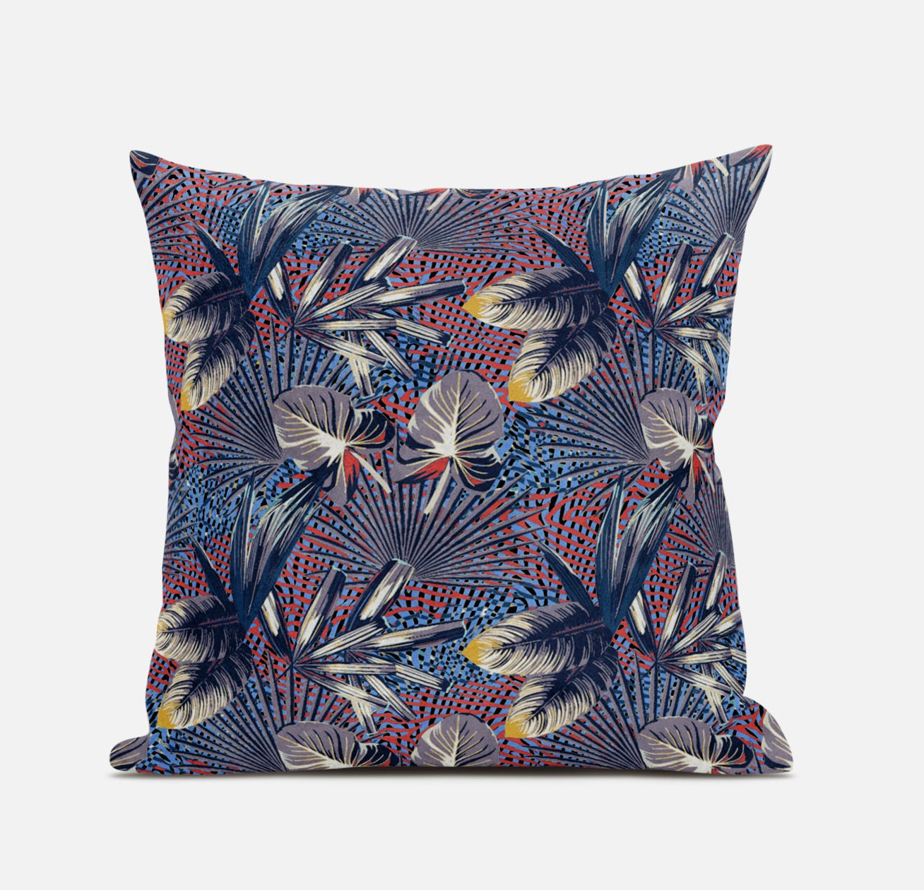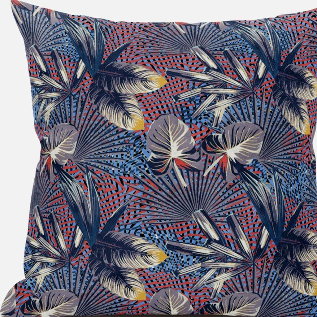 Indulge in the aesthetics of this jaw-dropping Indigo Red Tropical Suede Throw Pillow featuring a spectacularly bold color palette that instantly gives your décor an enchanting update. For powerful visual effect, shades of indigo, dove gray and white constitute the remarkable foliage upon a gridded base of rose red and cerulean blue. The deluxe suede fabric featured on the throw pillow gives it a premium feel while also being durable to last for a long time. The versatile blown and closed pillow is also soft to the touch, given its lush polyfill insert which makes it super fluffy and comfortable. The audacious yet soothingly vibrant hues in this decorative throw pillow make it an ideal accent to any boho-chic, tropical home. 16” x 16” x 5”