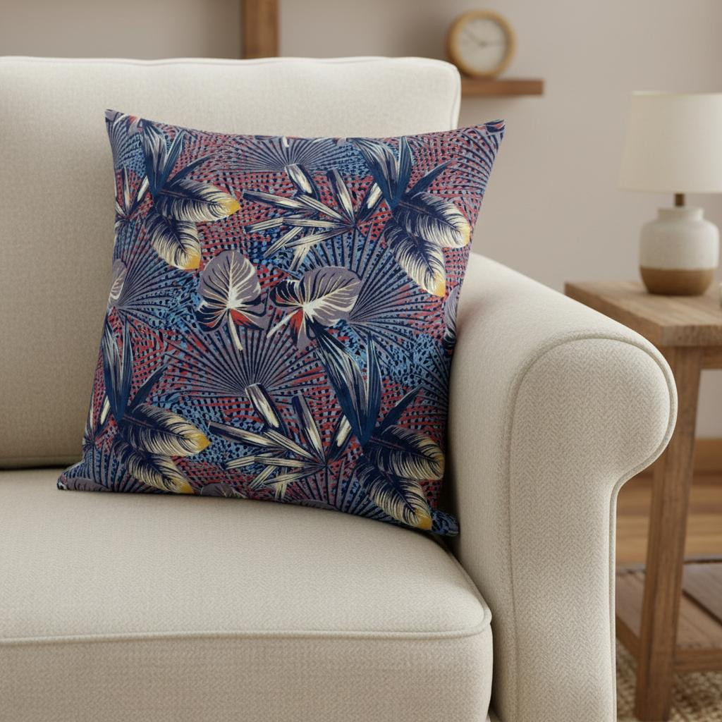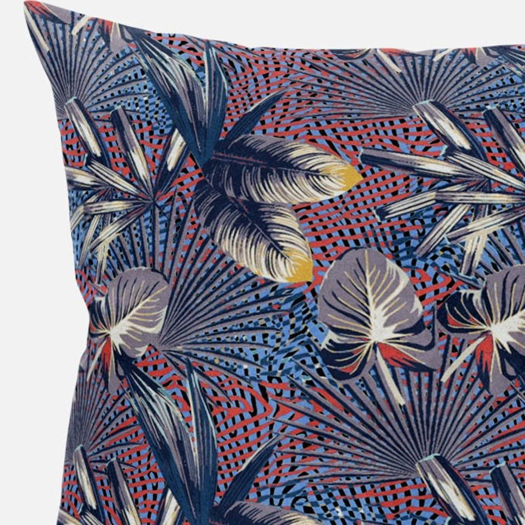 Indulge in the aesthetics of this jaw-dropping Indigo Red Tropical Suede Throw Pillow featuring a spectacularly bold color palette that instantly gives your décor an enchanting update. For powerful visual effect, shades of indigo, dove gray and white constitute the remarkable foliage upon a gridded base of rose red and cerulean blue. The deluxe suede fabric featured on the throw pillow gives it a premium feel while also being durable to last for a long time. The versatile blown and closed pillow is also soft to the touch, given its lush polyfill insert which makes it super fluffy and comfortable. The audacious yet soothingly vibrant hues in this decorative throw pillow make it an ideal accent to any boho-chic, tropical home. 20” x 20” x 5”