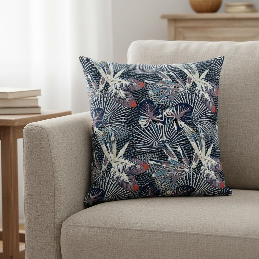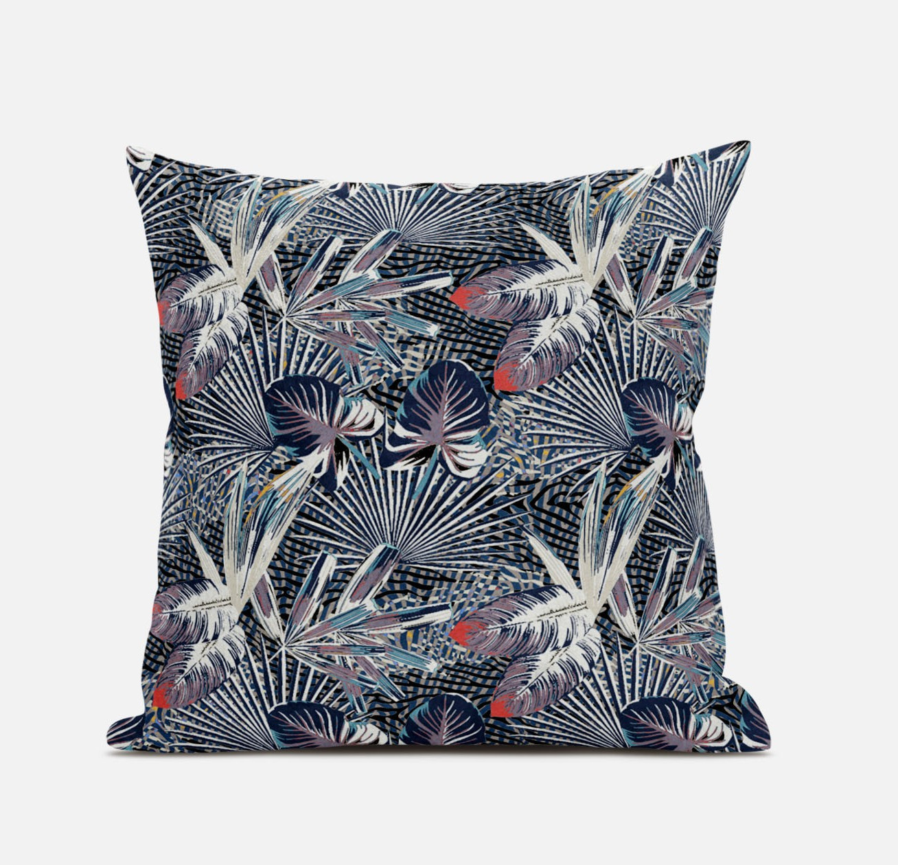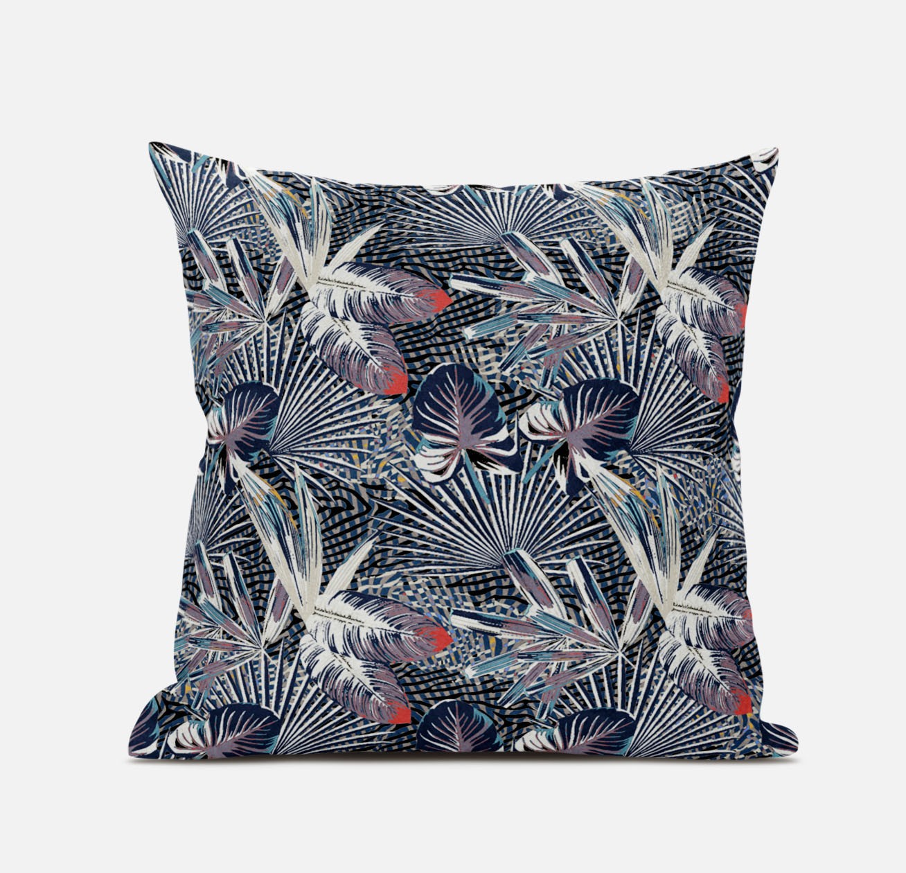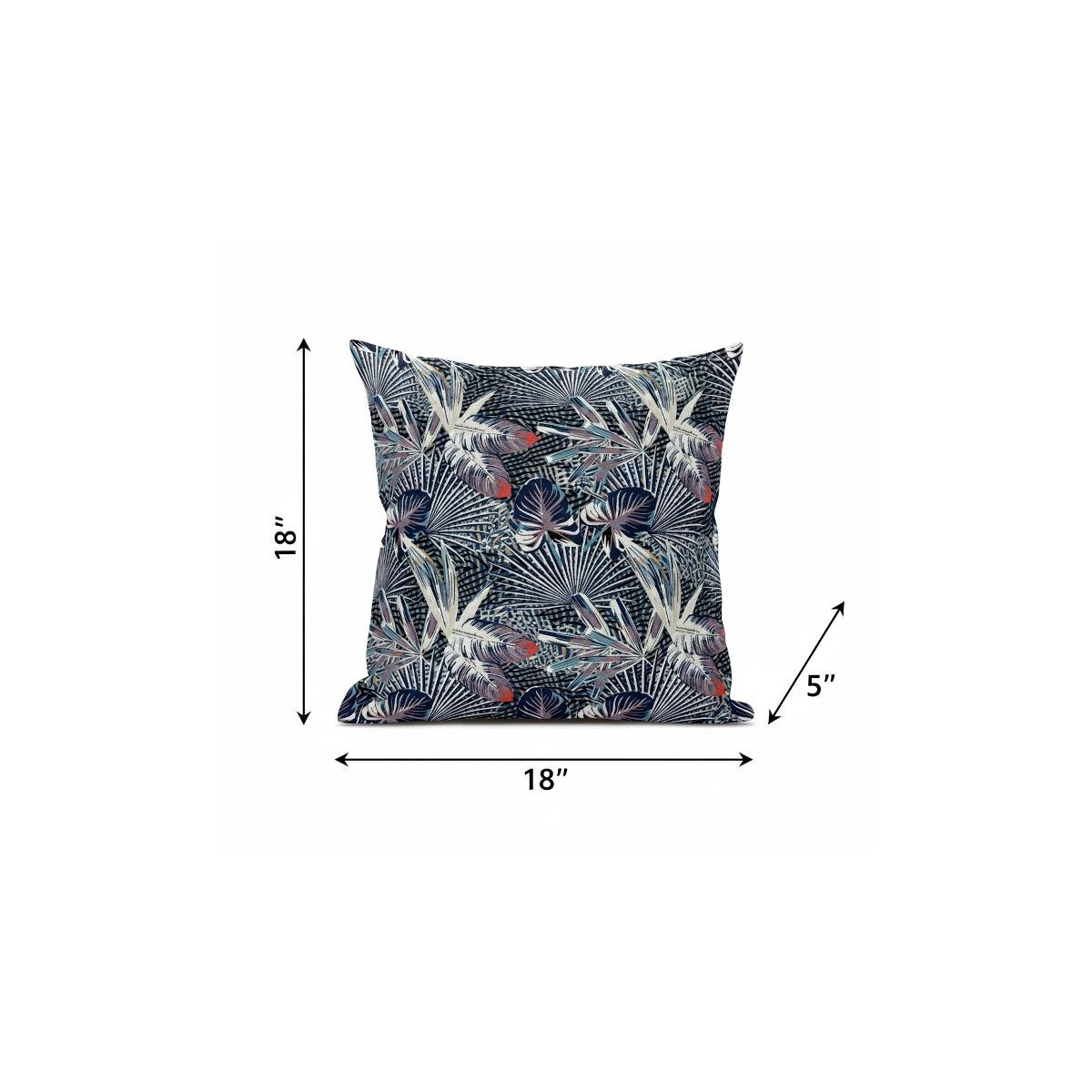 Balancing botanical elements with a bold color palette, this stunning Purple Indigo Tropical Suede Throw Pillow carries the essence of boho to layer into your coastal home. Flaunting an elaborate print of tropical leaves in a shroud of dusky purple, indigo, and white forming a canopy over an indigo-gray base, the pillow stands out as the attention-grabbing piece in any room. Crafted with the finest suede fabric, the decorative pillow is made to be eco-friendly, easy to clean, and very durable with a silky smooth surface texture. This blown and closed pillow comes with a durable polyfill insert that makes it super soft and comfortable with a luxurious fluffy look. Accentuate the coastal aesthetics in your home with the awe-inspiring print of this decorative throw pillow that can instantly transport the interior style to a tropical paradise. 18” x 18” x 5”