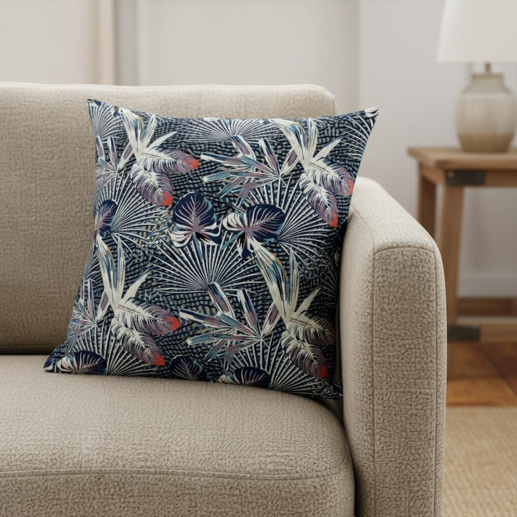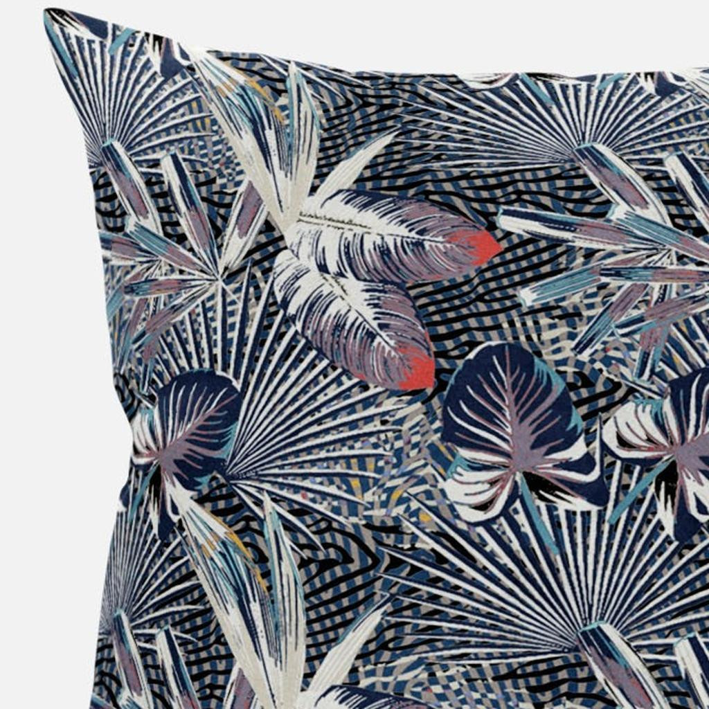 Balancing botanical elements with a bold color palette, this stunning Purple Indigo Tropical Suede Throw Pillow carries the essence of boho to layer into your coastal home. Flaunting an elaborate print of tropical leaves in a shroud of dusky purple, indigo, and white forming a canopy over an indigo-gray base, the pillow stands out as the attention-grabbing piece in any room. Crafted with the finest suede fabric, the decorative pillow is made to be eco-friendly, easy to clean, and very durable with a silky smooth surface texture. This blown and closed pillow comes with a durable polyfill insert that makes it super soft and comfortable with a luxurious fluffy look. Accentuate the coastal aesthetics in your home with the awe-inspiring print of this decorative throw pillow that can instantly transport the interior style to a tropical paradise. 20” x 20” x 5”