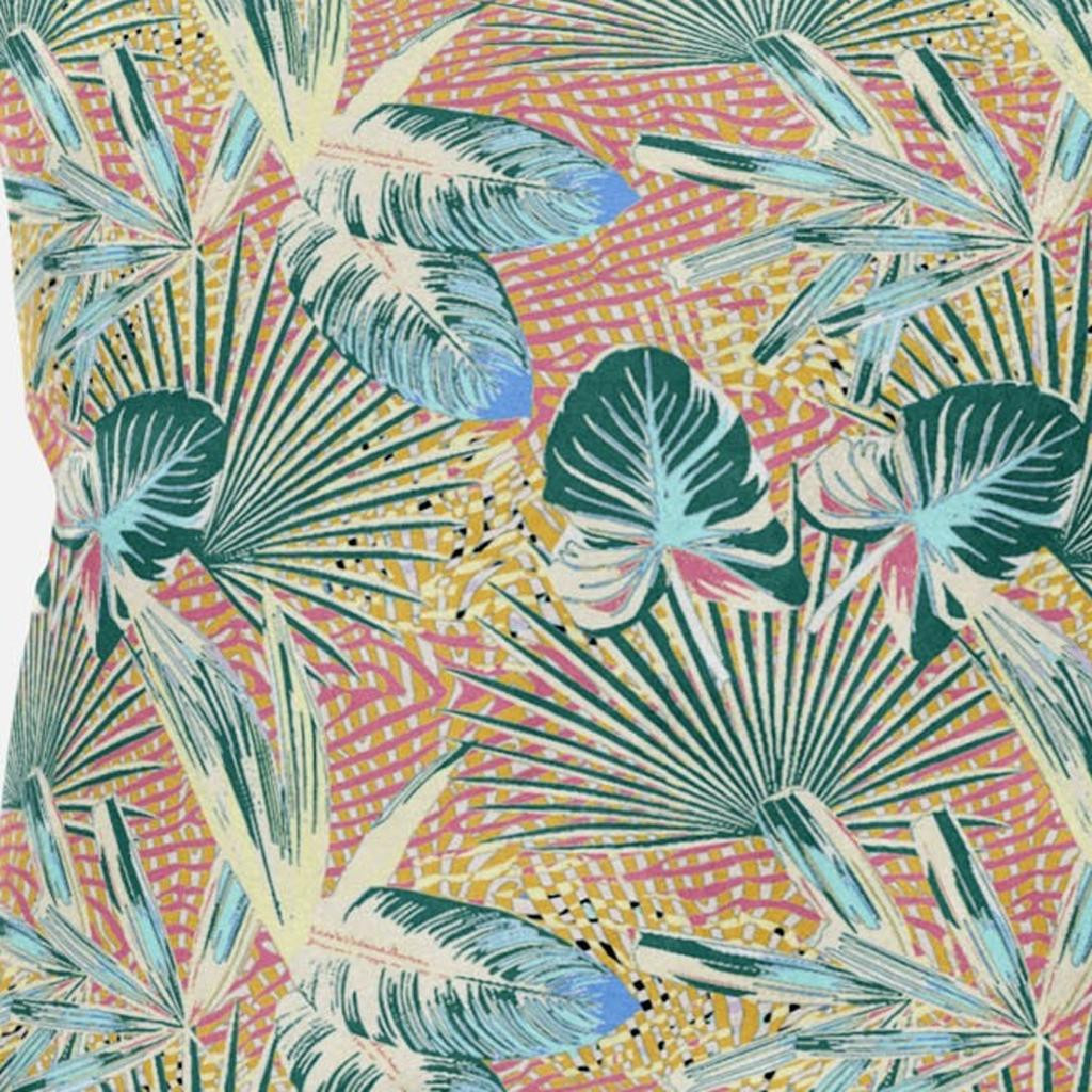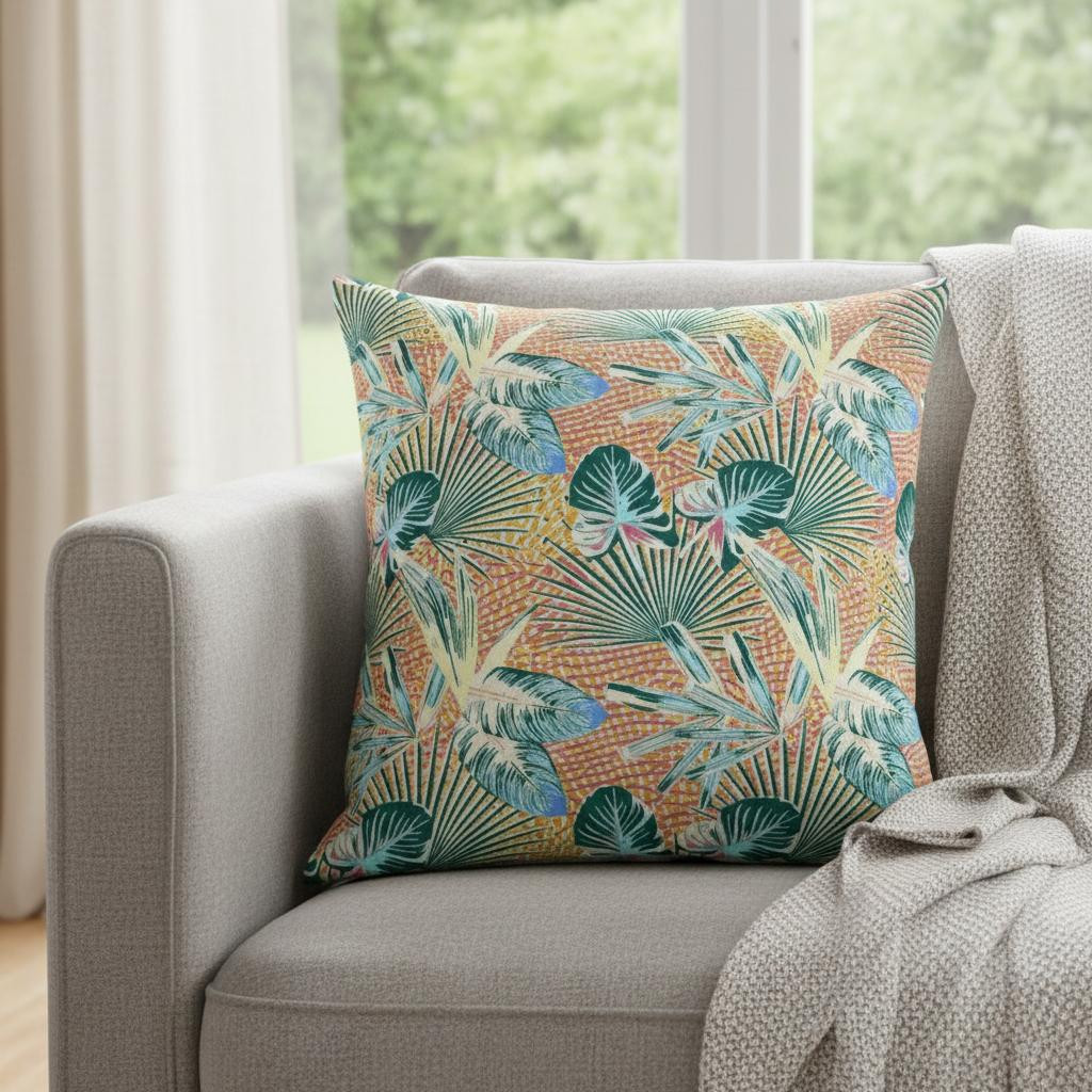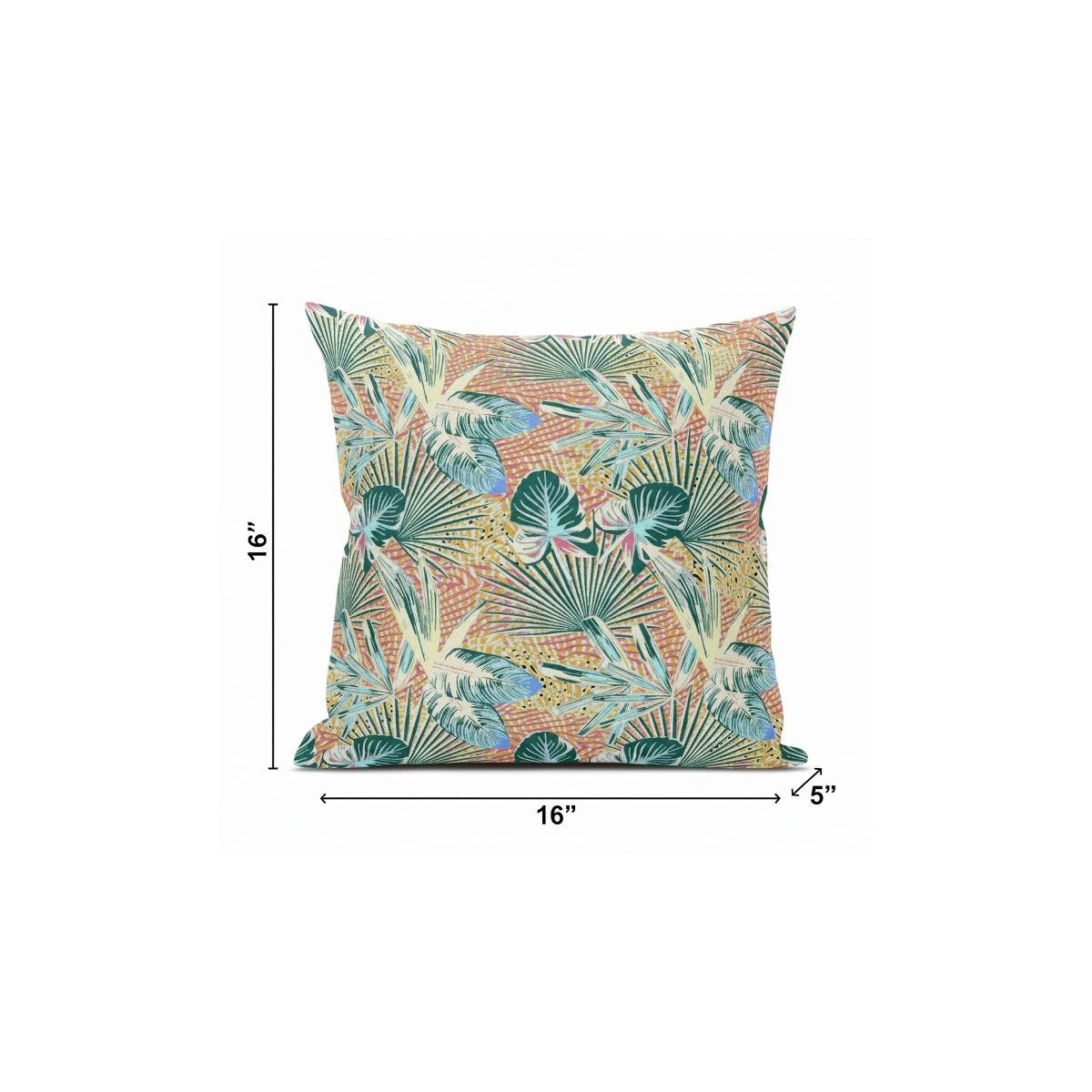 Subtle and playful all at the same time, this exquisite Blue Peach Tropical Suede Throw Pillow presents a blend of cool and warm-toned hues to give your tropical living space an alluring update. The pleasant peach-toned base is brimming with lush tropical foliage in shades of light blue and teal for a sense of serenity while the pops of yellow add a lively spirit to the pillow. This blown pillow is crafted from premium-quality suede fabric which is characterized by its soft and smooth surface texture for a delicate feel. With a polyester filling insert as soft as the clouds, the blown and closed pillow is perfectly suited for you to rest your head on. Give any modern, bohemian, or beach-side home a colorful update with this decorative throw pillow that will seamlessly blend in with a variety of interior themes and decors. 16” x 16” x 5”