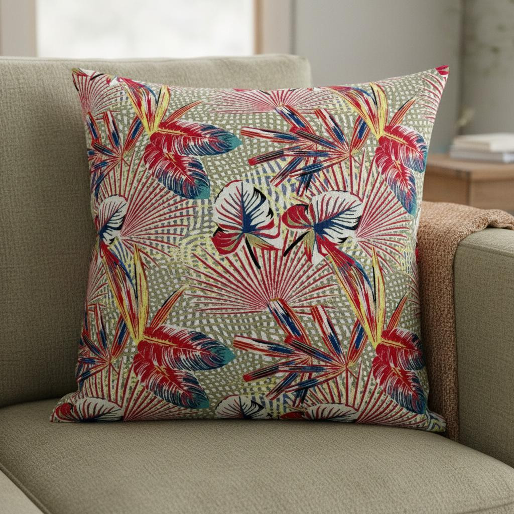 Add a sense of warmth to your living space with this Red Gold Tropical Suede Throw Pillow that features vibrant hues and natural elements to allure the gaze. A shroud of lush foliage painted in shades of gold, red, and blue enthrall the eyes and illustrate a stunning visual meant to add pops of colors to neutral decors. Made from superior grade suede for a durable structure and premium feel, it's the perfect accent for adding a velvety appeal to your indoor settings. This blown and closed pillow is filled with a durable polyfill insert for a soft and fluffy nature, providing maximum comfort when you lean on it. Emphasize a tropical essence in your home with the addition of this decorative throw pillow that will induce a cheerful ambiance in the room. 16” x 16” x 5”