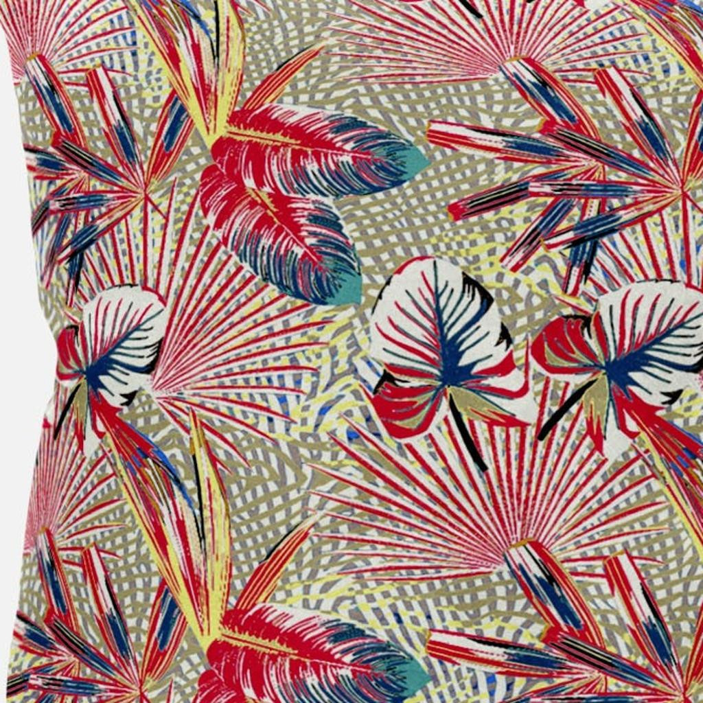 Add a sense of warmth to your living space with this Red Gold Tropical Suede Throw Pillow that features vibrant hues and natural elements to allure the gaze. A shroud of lush foliage painted in shades of gold, red, and blue enthrall the eyes and illustrate a stunning visual meant to add pops of colors to neutral decors. Made from superior grade suede for a durable structure and premium feel, it's the perfect accent for adding a velvety appeal to your indoor settings. This blown and closed pillow is filled with a durable polyfill insert for a soft and fluffy nature, providing maximum comfort when you lean on it. Emphasize a tropical essence in your home with the addition of this decorative throw pillow that will induce a cheerful ambiance in the room. 20” x 20” x 5”