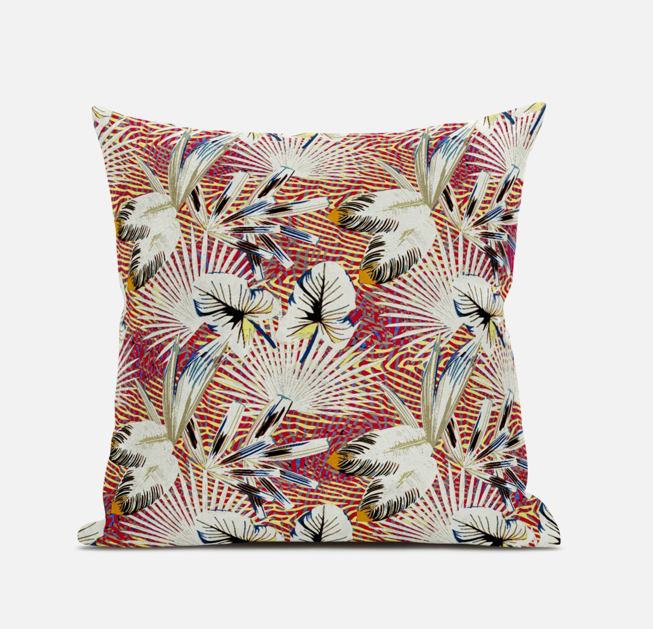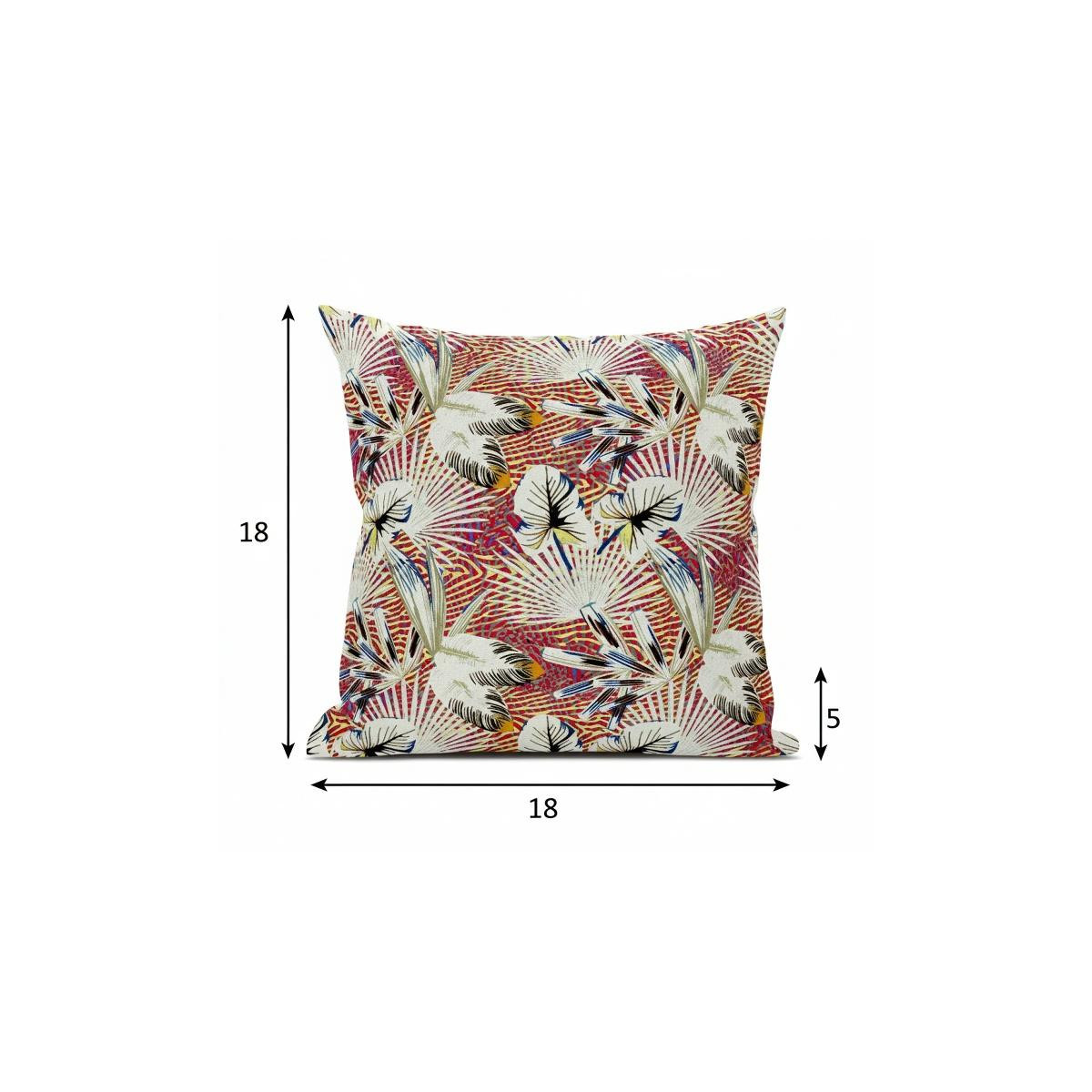 Induce an exuberant tropical aura into your living space with this eye-catching White Red Tropical Suede Throw Pillow that stands out from the rest of your décor with its unique look and feel. The dazzling white leaves on an exciting backdrop of rose red paired with pale yellow is a visual treat and reincarnates beauty into the home. Made to experience a sense of luxury, this pillow is crafted from the robust yet soft-to-the-touch suede fabric that is known for its appealing look and texture. This blown and closed pillow features a high-quality polyfill insert from optimum comfort while making the piece super fluffy for a luxurious feel on the touch. Decorate your living space with this stunning piece of art suitable for all styles of décor, and get an icon of tropical and coastal-boho fashion. 18” x 18” x 5”