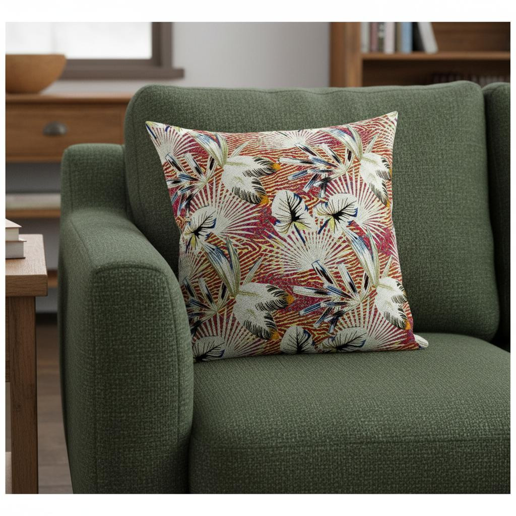 red tropical suede throw pillow, tropical suede throw pillow, 18 white red tropical suede, suede throw pillow, white red tropical suede throw |
