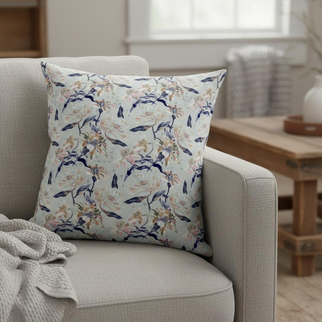 indigo roses suede throw pillow, roses suede throw pillow, 20 light blue indigo roses, light blue indigo roses suede, blue indigo roses suede throw |