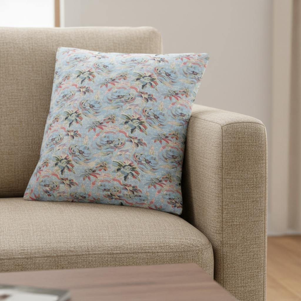 Reflecting simplicity and subtlety in an eye-soothing design, this beautiful Light Blue Red Roses Suede Throw Pillow evokes a refreshing ambiance in any contemporary home. The painted roses in soft strokes of pastel red, yellow, and green create a harmonious blend of colors on the light blue base, inducing a sense of tranquility in the atmosphere. The delicate drape in suede fabric not only gives this pillow a luxuriously smooth finish with a lustrous appearance but also ensures durability to last for a long time while being easy to maintain. This pillow comes with a soft and durable polyfill insert for added fluffiness, making it an ideal piece of décor to rest on or beautify your home. Enhance the contemporary aesthetics of your living room with this cool-toned throw pillow that will gracefully blend in with your modern ensemble. 18” x 18” x 5”