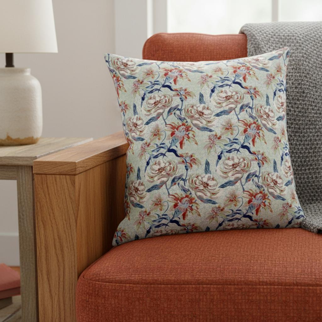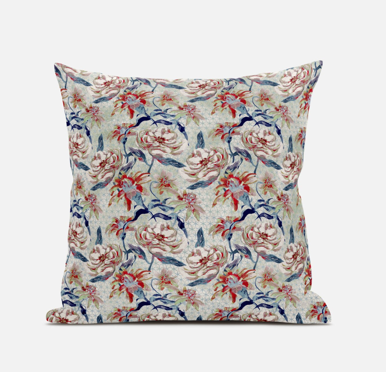 The art of balancing between trend and tradition is flaunted in this Red Indigo Roses Suede Throw Pillow that features alluring patterns in a soothing color palette. The intricately detailed brush-painted roses in red and white are emphasized with indigo leaves over a light green base, giving the pillow a sense of tranquility to fit in with contemporary decors. Crafted from leather-like suede fabric for ultimate softness and durability that gives this pillow a luxurious look and feel. This blown and closed pillow comes with a high-quality polyfill insert that makes the pillow super soft and fluffy for a comfortable resting experience. Bring a purely pleasing dimension to your modern living space with this beautiful throw pillow introduced in the room. 18” x 18” x 5”