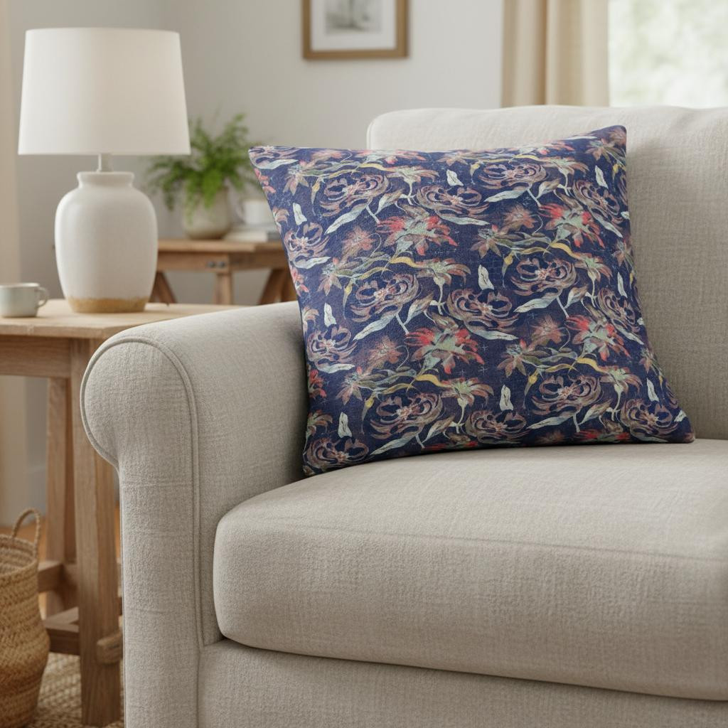 The charismatic colors and refined look of this gorgeous Midnight Blue Roses Suede Throw Pillow curate the ideal look of bohemian gracefulness to adorn any modern or transitional space. The cluster of roses in an assortment of warm and cool-toned hues gives the pillow a charming look over the midnight blue base, creating a stunning visual contrast. The deluxe suede fabric featured on the throw pillow gives it a premium feel while also being durable to last for a long time. The versatile blown and closed pillow is also soft to the touch, given its lush polyfill insert which makes it super fluffy and comfortable. Update the modern aesthetics of your home with this exquisite throw pillow that refreshes the modern interior flawlessly, blending in an air of boho to the room. 16” x 16” x 5”
