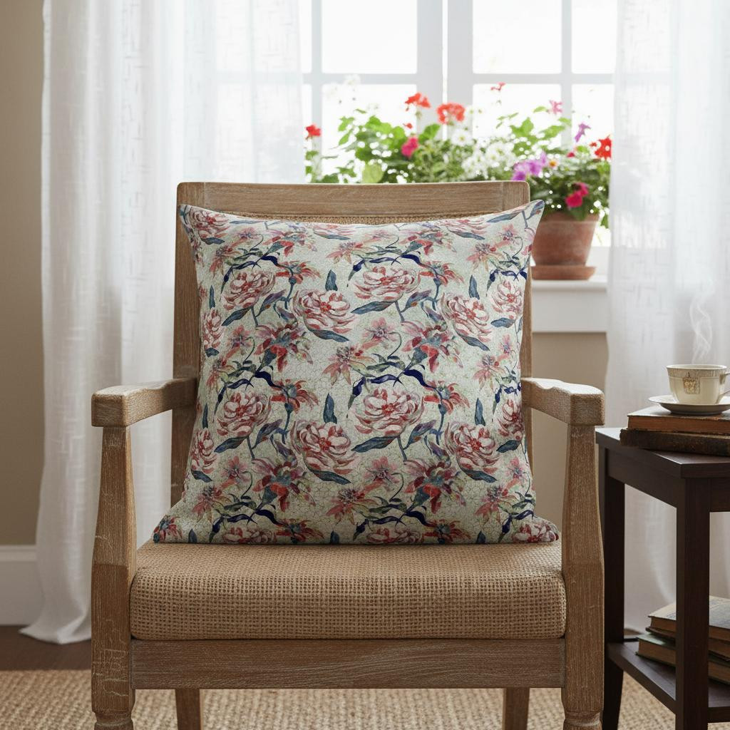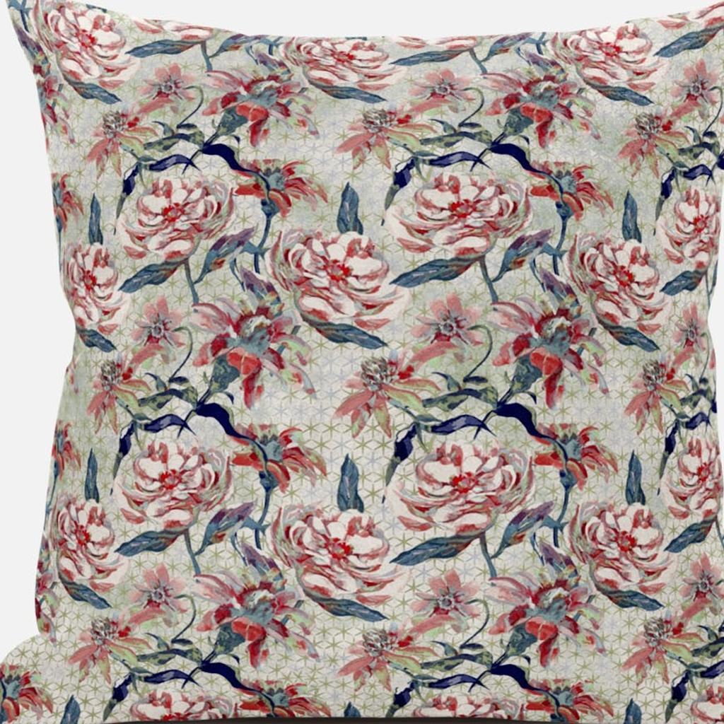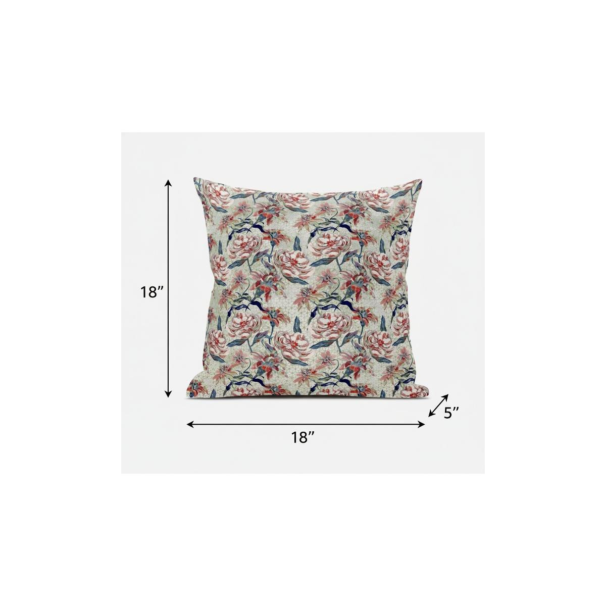 Designed in a bohemian style, this Red Pale Green Roses Suede Throw Pillow will induce a sense of sophistication and grandeur into your interior decor. The wondrous pattern of roses and vines in muted red, white, and pale indigo-green are beautifully printed over an off-white base for a classic and eye-soothing visual appeal. Made from superior grade suede fabric for a durable structure and premium feel, it's the perfect accent for adding a velvety appeal to your indoor settings. This blown and closed pillow comes with a soft polyfill insert that gives this piece a plush and fluffy look for utmost comfort. Express your love for floral prints and subtle tones with this beautiful throw pillow that will seamlessly blend in with any modern or transitional ensemble. 18” x 18” x 5”