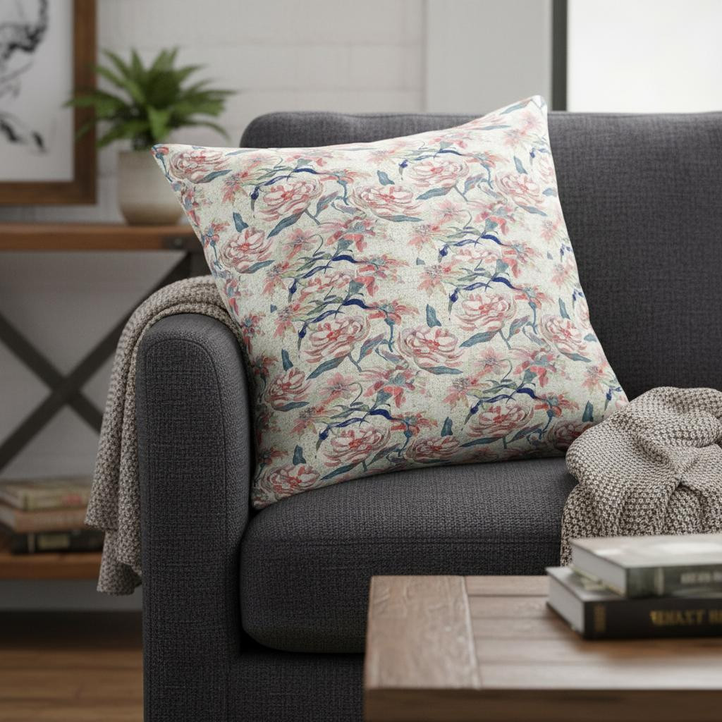 Designed in a bohemian style, this Red Pale Green Roses Suede Throw Pillow will induce a sense of sophistication and grandeur into your interior decor. The wondrous pattern of roses and vines in muted red, white, and pale indigo-green are beautifully printed over an off-white base for a classic and eye-soothing visual appeal. Made from superior grade suede fabric for a durable structure and premium feel, it's the perfect accent for adding a velvety appeal to your indoor settings. This blown and closed pillow comes with a soft polyfill insert that gives this piece a plush and fluffy look for utmost comfort. Express your love for floral prints and subtle tones with this beautiful throw pillow that will seamlessly blend in with any modern or transitional ensemble. 20” x 20” x 5”