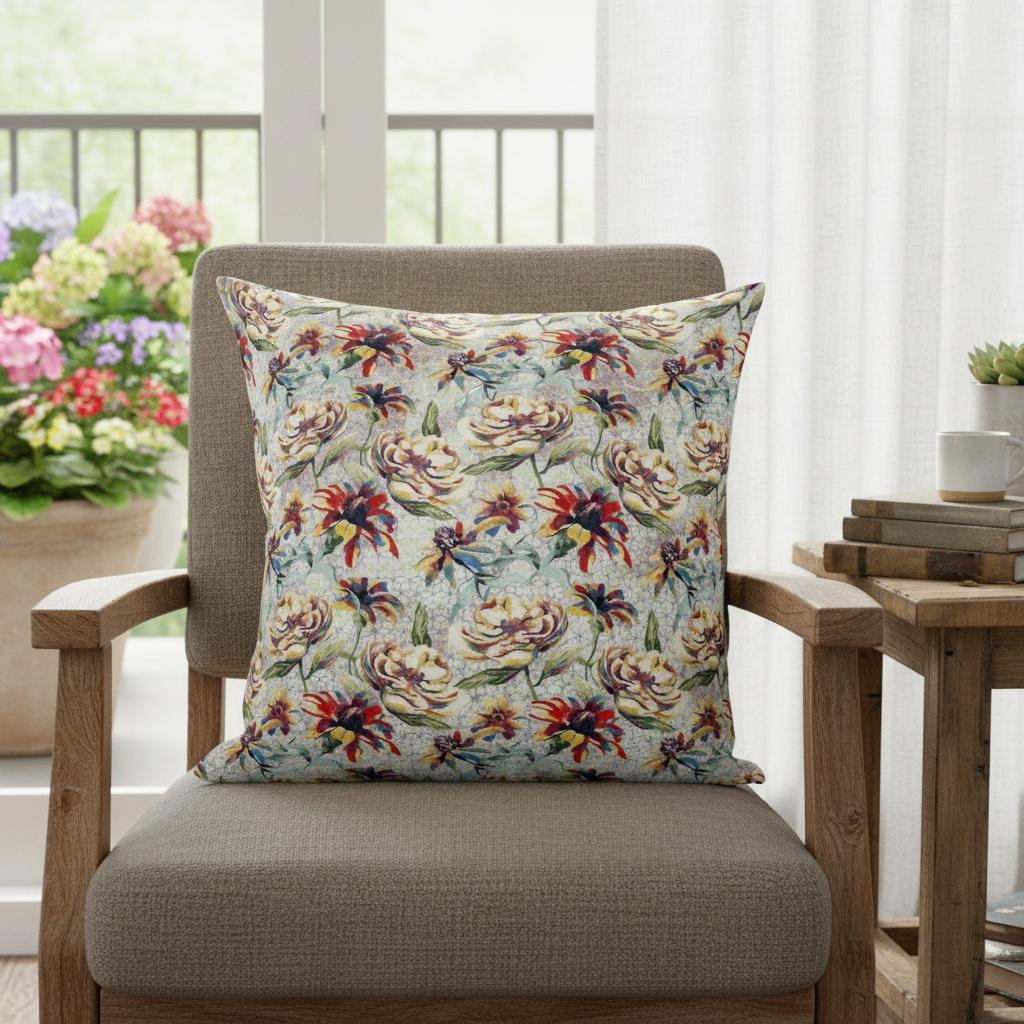 Illustrating an array of vibrant hues and blooming flowers in an eye-catching design, this Red Yellow Roses Suede Throw Pillow hits the right chord of florals and colors to accentuate a bohemian vibe. The pillow features roses in shades of red, yellow, and peach with hints of moss green leaves against a soft blue background, creating a calm yet captivating visual aesthetic. Crafted from a sturdy suede fabric, the pillow ensures durability with a soft and smooth texture, ideal for everyday use. The blown pillow is filled with high-quality polyester filling to give that airy, soft feel, making it very comfortable to lean on. Bring a dash of warmth and color you’re your living space with this stunning decorative pillow that’s sure to earn you loads of compliments from the guests. 18” x 18” x 5”