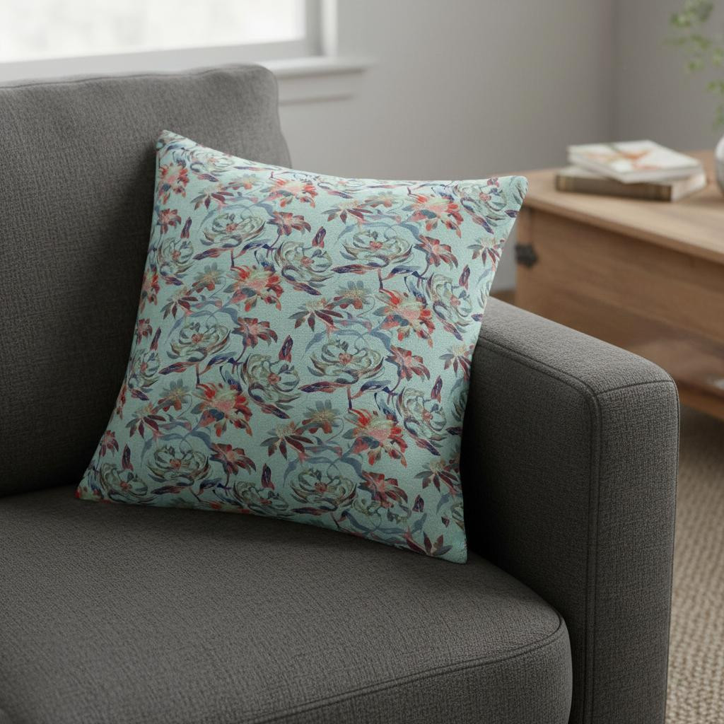 Enliven your interior decor with the addition of this tasteful Red Aqua Roses Suede Throw Pillow that brings with it a carefree and tranquil vibe to your home. Printed in a roseate design, the decorative pillow boasts shades of red and aqua, giving it an alluring appearance to draw attention. The high-quality suede fabric gives this pillow a luxurious appearance with a silky smooth finish while assuring long-lasting durability to serve you well in the future years. This decorative throw pillow features a soft polyfill insert which makes the piece super fluffy and comfortable to support your neck and back when you lean on it. The soothing hues and floral prints on this throw pillow resemble a lovely watercolor painting that will undeniably complement the aesthetics of your boho-chic home. 18” x 18” x 5”