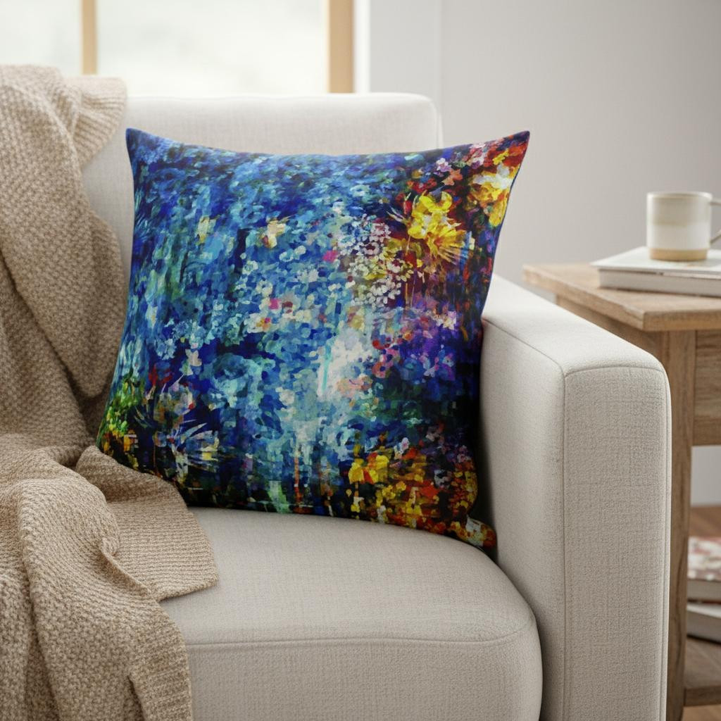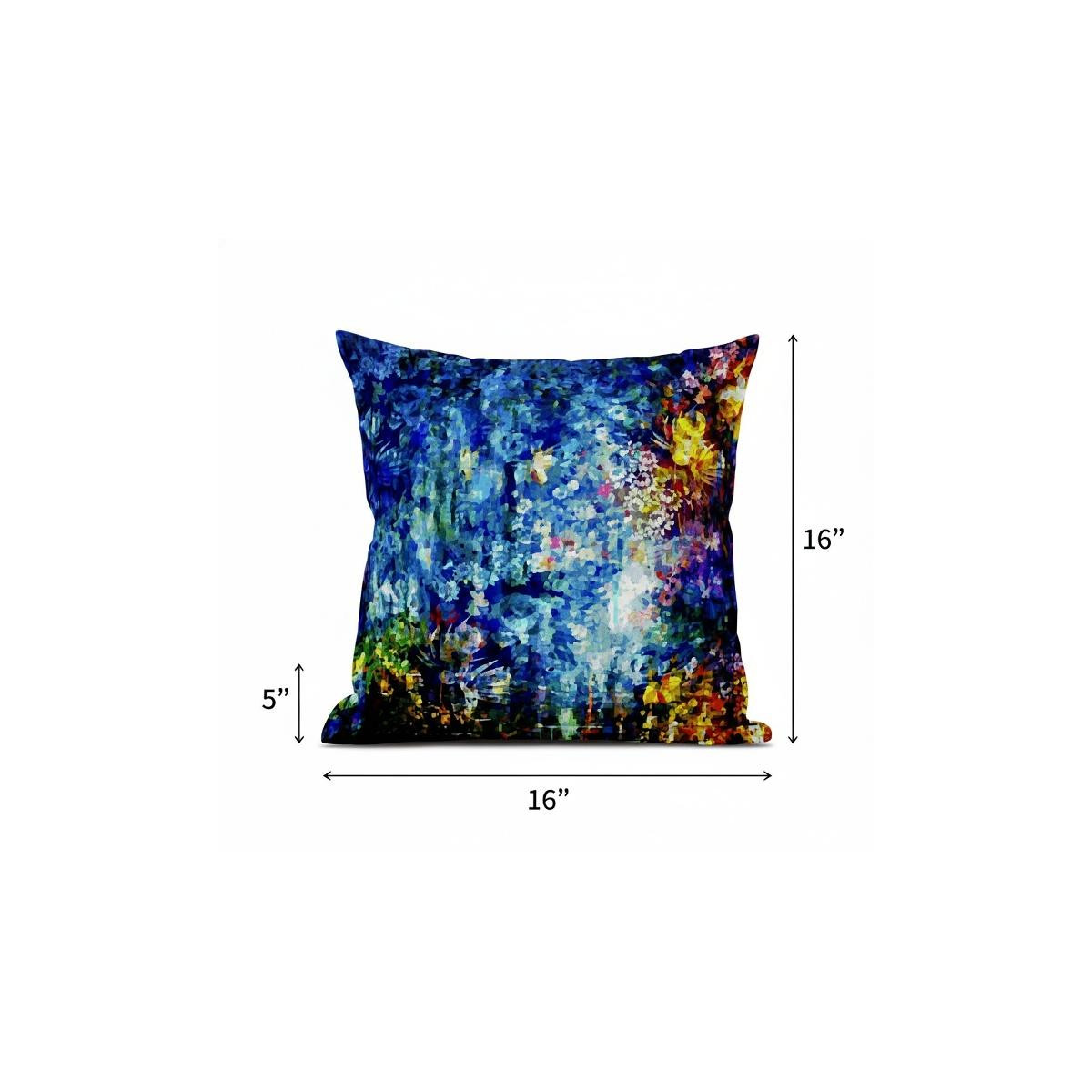 Delve into a realm of euphoria and bliss with this alluring Bright Blue Yellow Springtime Suede Throw Pillow that will have you hypnotized by its sheer artistry. Featuring a myriad of tranquilizing hues such as bright blue, canary yellow, and hints of turquoise and orange, it is sure to radiate a powerful aura of serenity and grace throughout your living room. The smooth and silky texture of the suede fabric provides an opulent and sumptuous look while promising enhanced longevity for years to come. Featuring a soft polyfill insert, this blown and closed throw pillow is very fluffy and super comfortable to lean on for maximizing comfort. To fill your home with a contemporary rush of elegance and signature beauty, choose this jaw-dropping throw pillow to elevate your living space décor. 16” x 16” x 5”