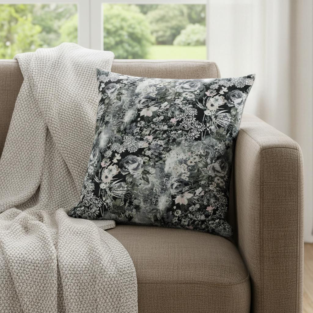 Give your household a modern sophisticated touch-up with this artistic Gray White Springtime Suede Throw Pillow. With a shadow gray backdrop highlighting its finesse, the eclectic white florals on top are what make it a piece of art to marvel at. The pristine look of this pillow comes from the fine-quality suede fabric that ensures long-lasting durability and a plush surface texture for a soft and inviting feel. This eco-friendly cushion has a soft polyester filling inside, making it super fluffy and comfortable to lean on. Not only will the neutral hues of this elegantly designed throw pillow look great paired up with soft-toned decors but it will also create a striking contrast when placed against bold and vibrant backgrounds. 18” x 18” x 5”