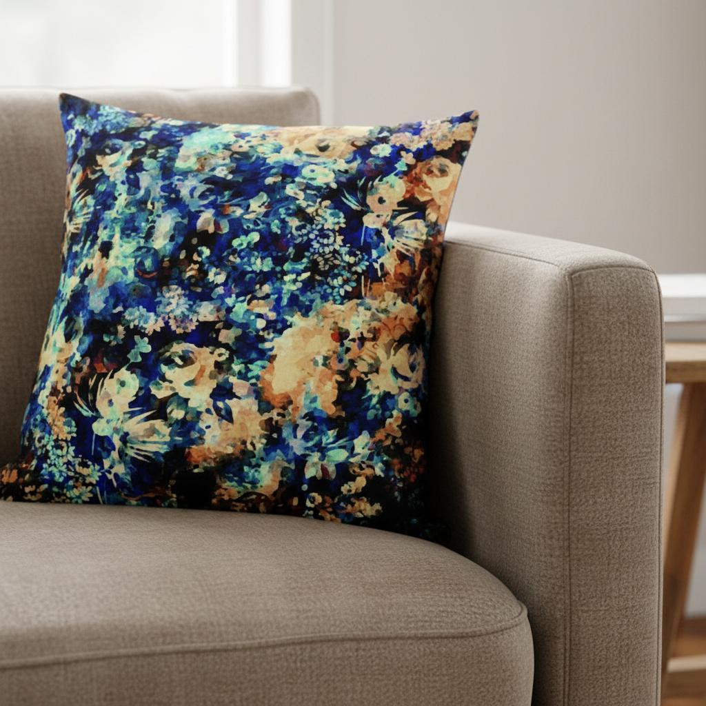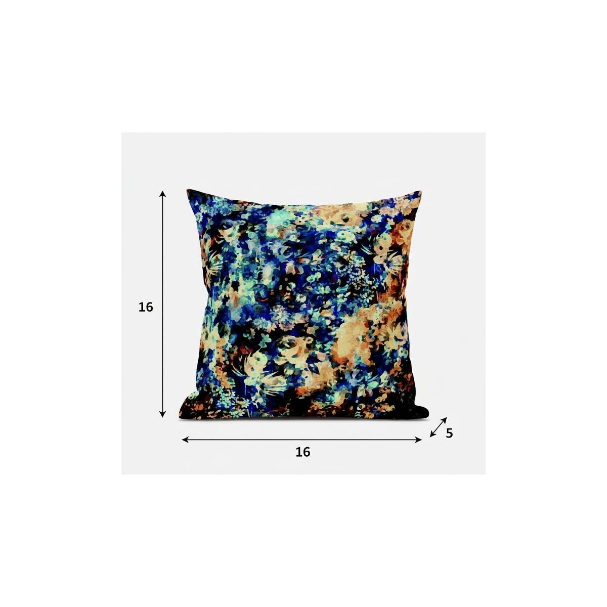Bask in the soothing freshness of the ocean with this spellbinding Orange Blue Springtime Suede Throw Pillow The overlapping eclectic florals and blotches of color in magnificent shades of turquoise blue, indigo-black, and melon-orange that add a coastal vibe with contemporary essence. The silky smooth and durable suede fabric gives the piece an appealing texture while ensuring enhanced durability to serve you for years. This blown and closed pillow is finished to perfection with a soft and durable polyfill insert for a fluffy appearance, making it an ideal accent piece in terms of fashion and functionality. The beautiful blend of soft and vibrant hues in this stunning decorative pillow makes it an exquisite addition to any contemporary, coastal, or boho-chic home. 16” x 16” x 5”