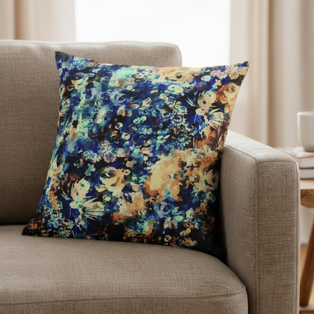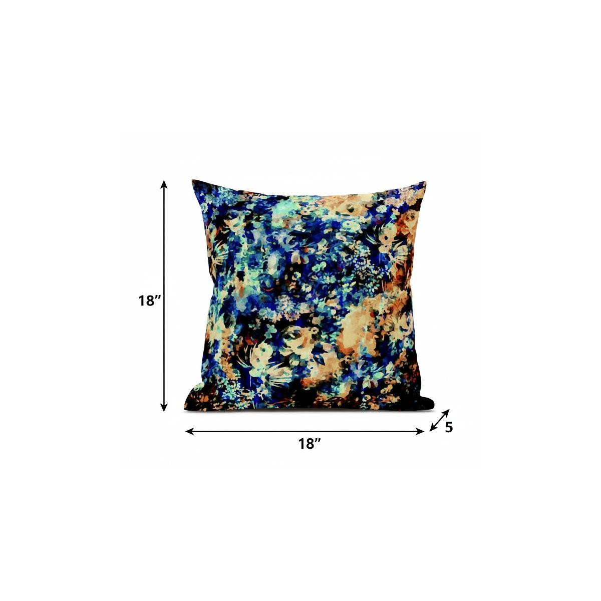 Bask in the soothing freshness of the ocean with this spellbinding Orange Blue Springtime Suede Throw Pillow The overlapping eclectic florals and blotches of color in magnificent shades of turquoise blue, indigo-black, and melon-orange that add a coastal vibe with contemporary essence. The silky smooth and durable suede fabric gives the piece an appealing texture while ensuring enhanced durability to serve you for years. This blown and closed pillow is finished to perfection with a soft and durable polyfill insert for a fluffy appearance, making it an ideal accent piece in terms of fashion and functionality. The beautiful blend of soft and vibrant hues in this stunning decorative pillow makes it an exquisite addition to any contemporary, coastal, or boho-chic home. 18” x 18” x 5”