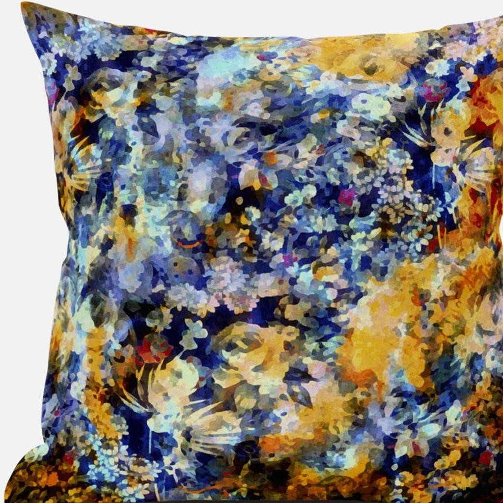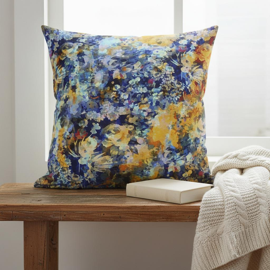 Incorporating an artistic spin on natural elements, this gorgeous Orange Indigo Springtime Suede Throw Pillow will induce an eye-catching contemporary flair into your home. The dreamy fusion of hues in Sunrise orange and indigo transfigures into a piece of art that draws in the attention of viewers. Made to experience a sense of luxury, this pillow is crafted from the robust yet soft-to-the-touch suede fabric that is known for its appealing look and texture. This blown pillow features a high-quality polyfill insert for optimum comfort while making the piece super fluffy for a luxurious feel on the touch. If you desire a soothing, positive atmosphere in your home, opt for this luscious decorative pillow that will effortlessly accentuate your contemporary home. 16” x 16” x 5”