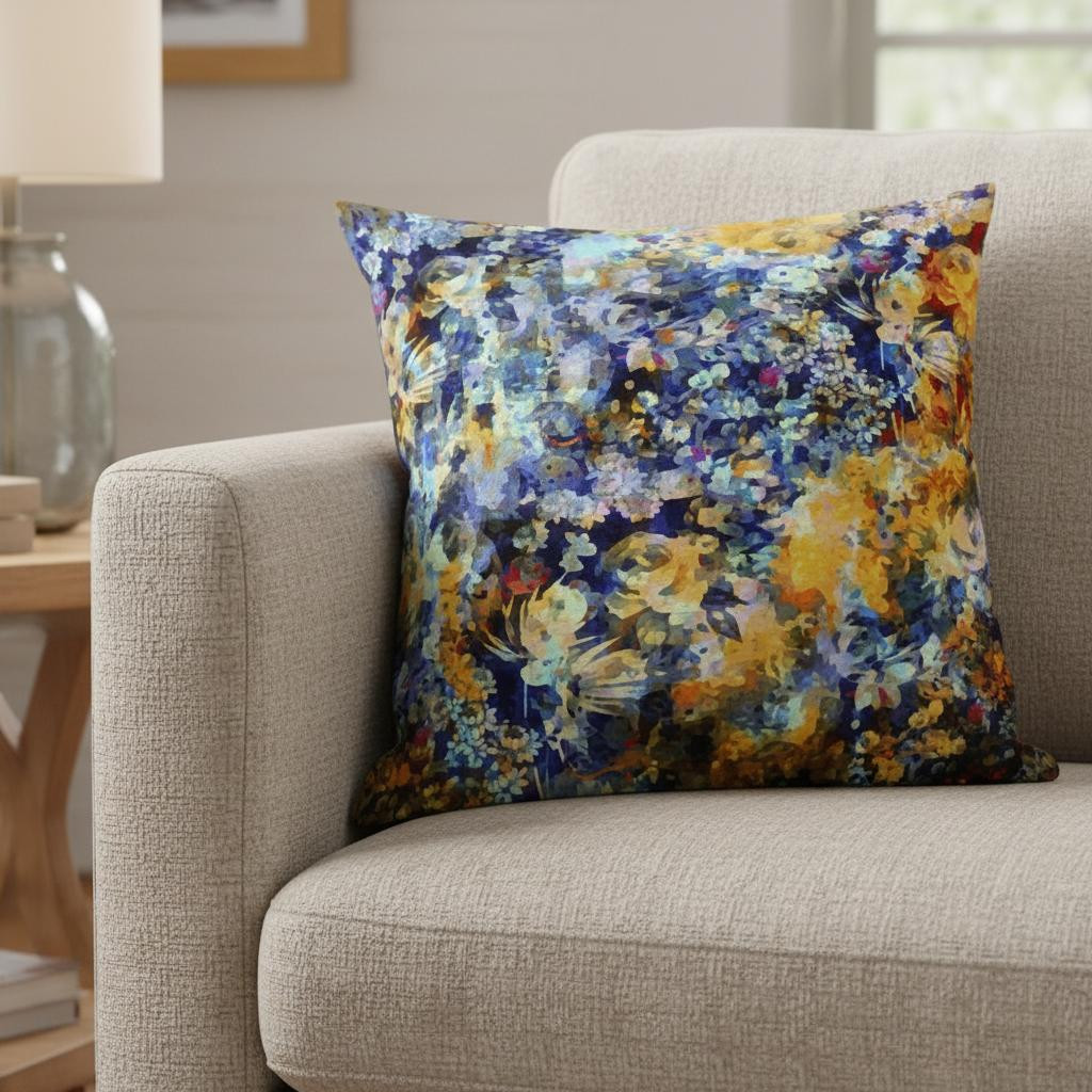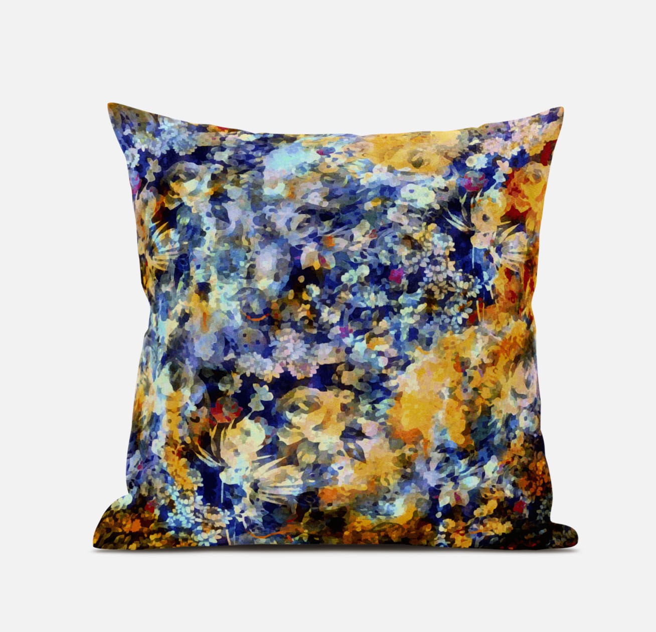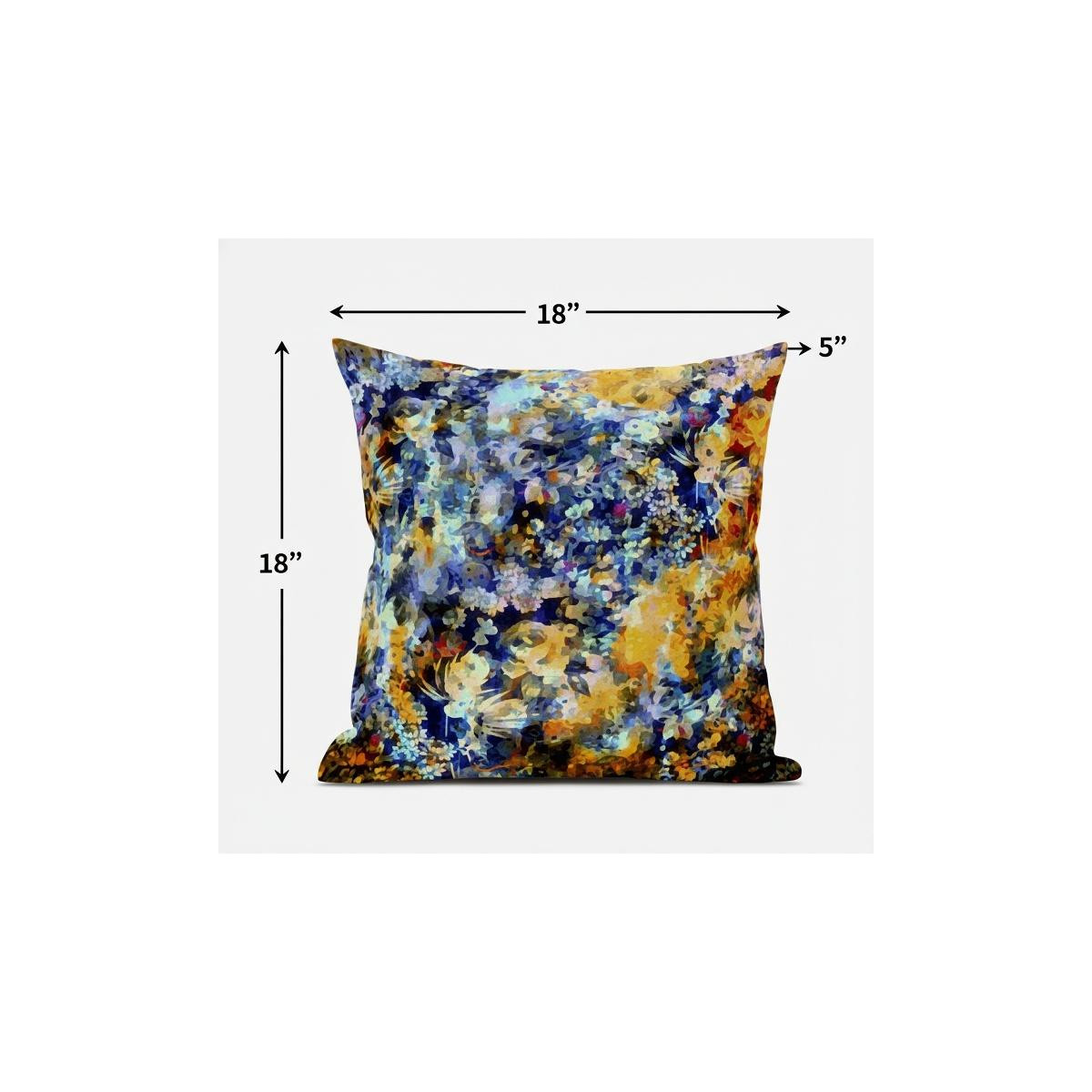 Incorporating an artistic spin on natural elements, this gorgeous Orange Indigo Springtime Suede Throw Pillow will induce an eye-catching contemporary flair into your home. The dreamy fusion of hues in Sunrise orange and indigo transfigures into a piece of art that draws in the attention of viewers. Made to experience a sense of luxury, this pillow is crafted from the robust yet soft-to-the-touch suede fabric that is known for its appealing look and texture. This blown pillow features a high-quality polyfill insert for optimum comfort while making the piece super fluffy for a luxurious feel on the touch. If you desire a soothing, positive atmosphere in your home, opt for this luscious decorative pillow that will effortlessly accentuate your contemporary home. 18” x 18” x 5”