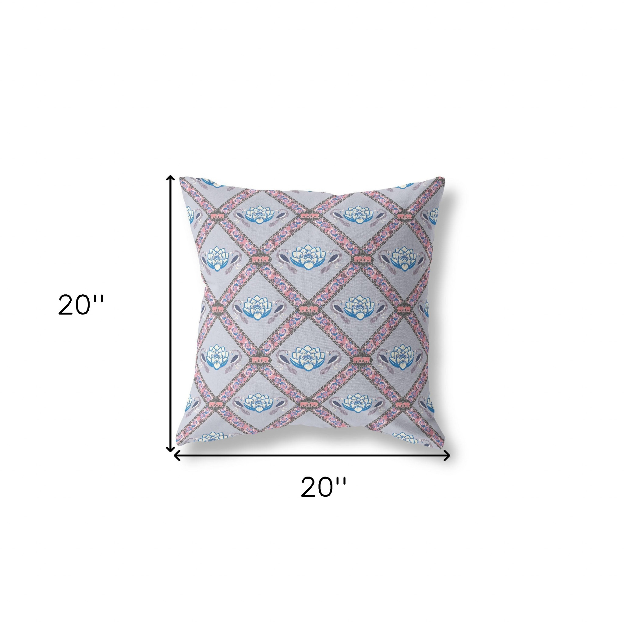 This 20" x 20" gray blue pink lotus floral blown seam suede throw pillow will add a beautiful decorative accent to your decor. Decorative throw pillows not only add color and dimension to your space but can be comfy and supportive when you are lounging and cuddling as well. Decorative pillows are a great way to change up the look and feel of your space easily and quickly. 5" H x 20" W x 20" D