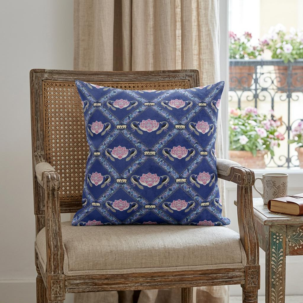 seam suede throw pillow, blown seam suede throw pillow, pink lotus floral blown seam, 18" X 18" purple blue pink, x18" X 18" purple blue pink lotus |