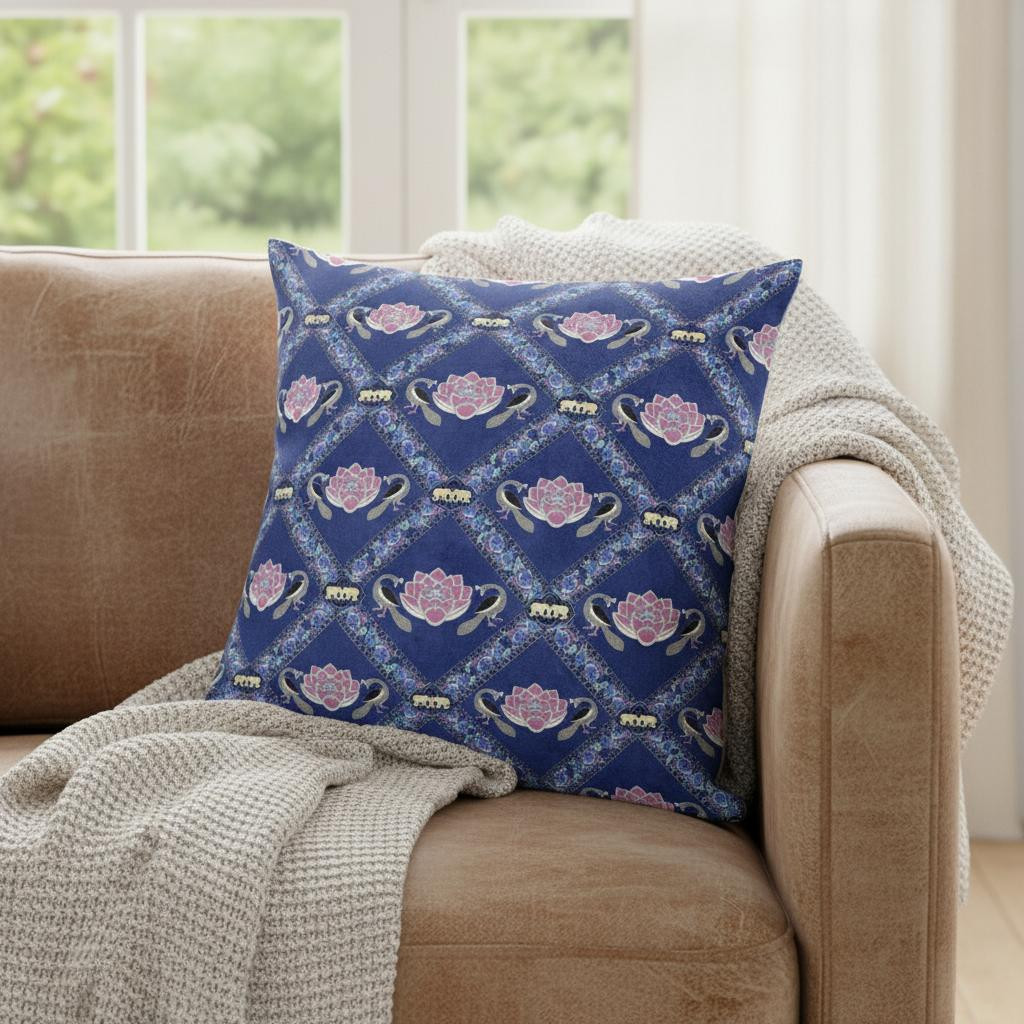 seam suede throw pillow, blown seam suede throw pillow, pink lotus floral blown seam, 20" X 20" purple blue pink, purple blue pink lotus floral |