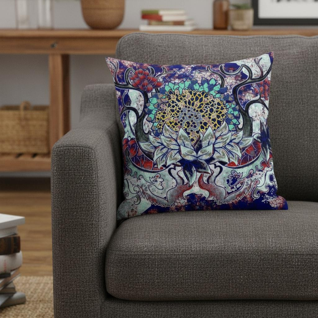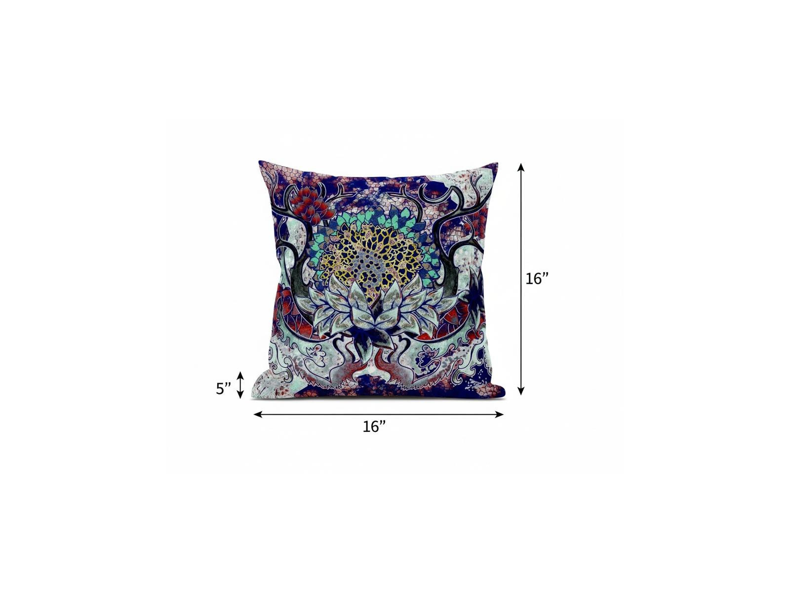 Bring an enchanting blend of colors into your living space with this Blue Cyan Flower Bloom Suede Throw Pillow. The alluring vines and creepers in shades of blue, cyan, red, and yellow create a stunning visual resembling a mystic pathway to a fantasy land, making this pillow an eye-catching accent for a variety of interior styles. Crafted from a sturdy suede fabric, the pillow ensures durability with a soft and smooth texture, ideal for everyday use. The soft and durable polyfill insert makes this pillow super fluffy and cuddly to let you experience utmost comfort when you hold it. Transform the aesthetics of your home with the addition of this colorful decorative pillow on the sofa or couch. 16” x 16” x 5”