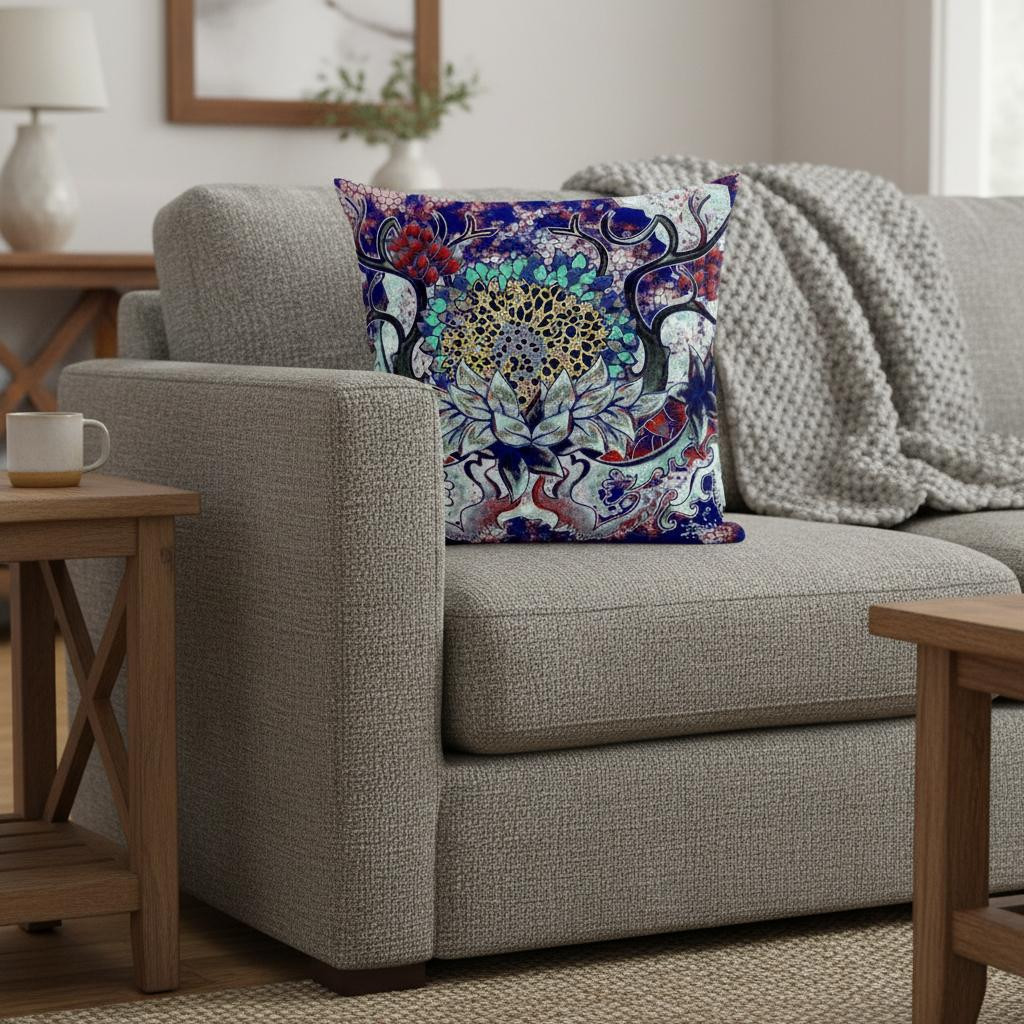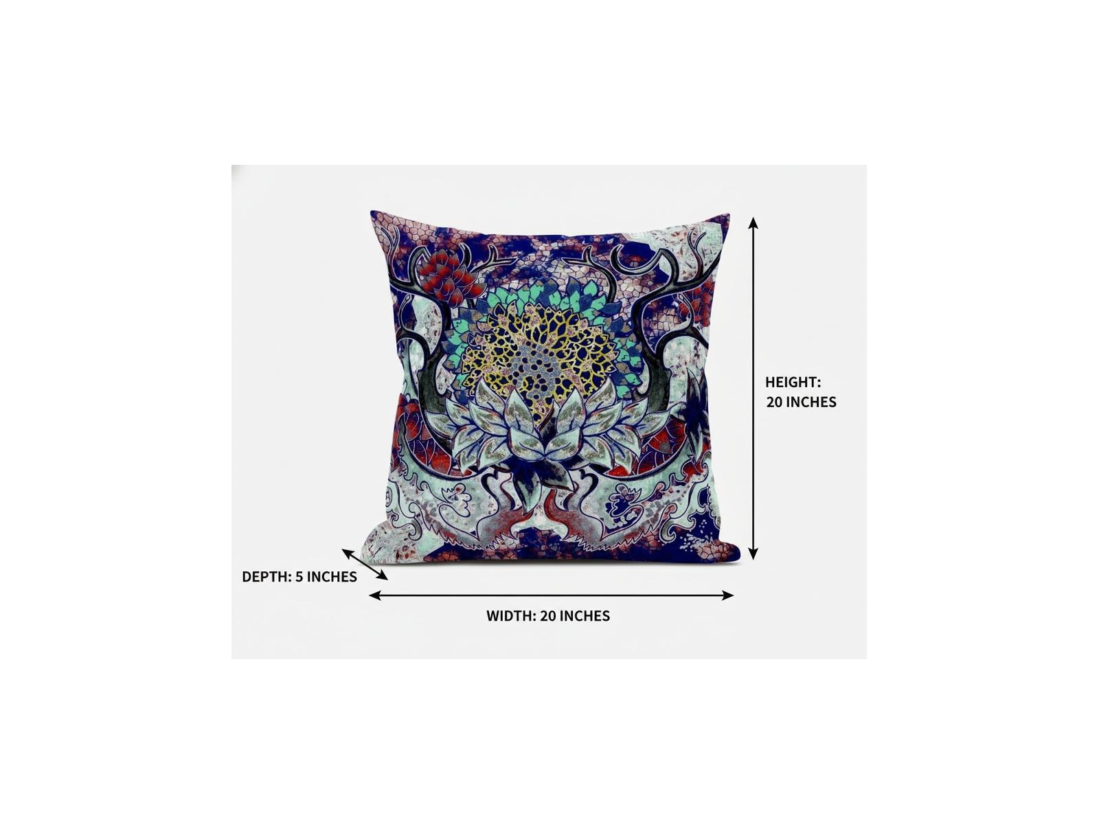 Bring an enchanting blend of colors into your living space with this Blue Cyan Flower Bloom Suede Throw Pillow. The alluring vines and creepers in shades of blue, cyan, red, and yellow create a stunning visual resembling a mystic pathway to a fantasy land, making this pillow an eye-catching accent for a variety of interior styles. Crafted from a sturdy suede fabric, the pillow ensures durability with a soft and smooth texture, ideal for everyday use. The soft and durable polyfill insert makes this pillow super fluffy and cuddly to let you experience utmost comfort when you hold it. Transform the aesthetics of your home with the addition of this colorful decorative pillow on the sofa or couch. 20” x 20” x 5”
