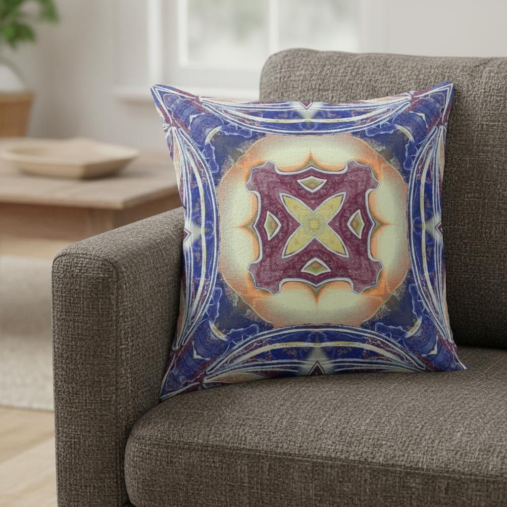 The saturated hues of this Indigo Cream Geo Tribal Suede Throw Pillow will enhance the visual appeal of your living space with a tribal essence. The captivating cream-toned center flaunts a tribal geo floral motif in plum and pale yellow color for a striking contrast over the distressed indigo blue base. The silky smooth and durable suede fabric gives the piece an appealing texture while ensuring enhanced durability to serve you for years. This blown and closed pillow is finished to perfection with a soft and durable polyfill insert for a fluffy appearance, making it an ideal accent piece in terms of fashion and functionality. If you want a bold and bright piece of décor to spruce up your living space, go for this tribal-inspired throw pillow that is sure to draw the attention of the guests. 16” x 16” x 5”