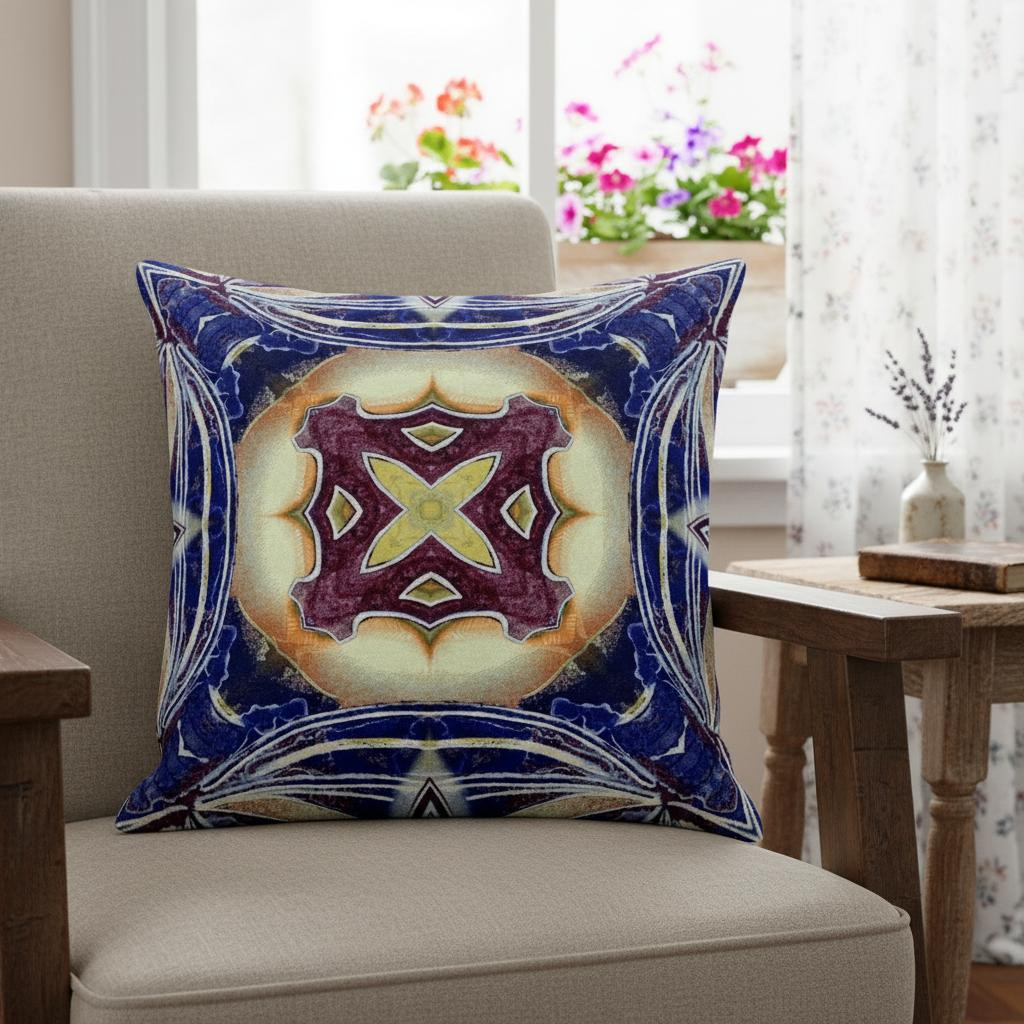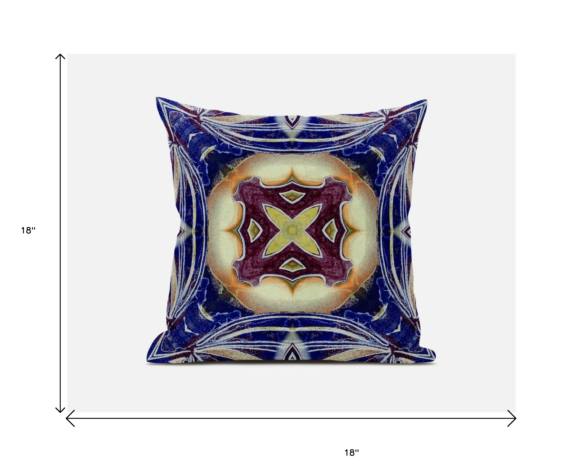 The saturated hues of this Indigo Cream Geo Tribal Suede Throw Pillow will enhance the visual appeal of your living space with a tribal essence. The captivating cream-toned center flaunts a tribal geo floral motif in plum and pale yellow color for a striking contrast over the distressed indigo blue base. The silky smooth and durable suede fabric gives the piece an appealing texture while ensuring enhanced durability to serve you for years. This blown and closed pillow is finished to perfection with a soft and durable polyfill insert for a fluffy appearance, making it an ideal accent piece in terms of fashion and functionality. If you want a bold and bright piece of décor to spruce up your living space, go for this tribal-inspired throw pillow that is sure to draw the attention of the guests. 18” x 18” x 5”