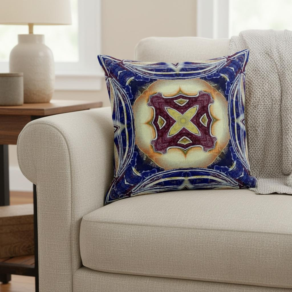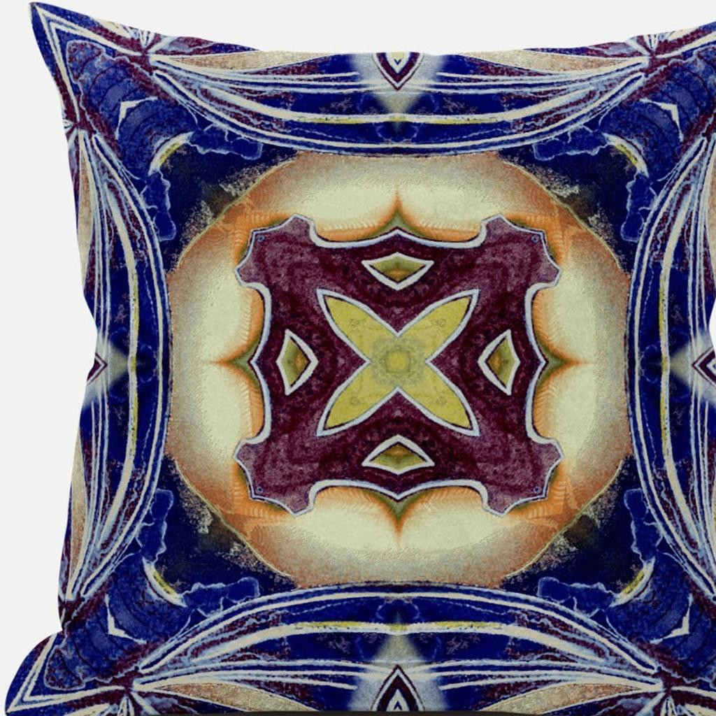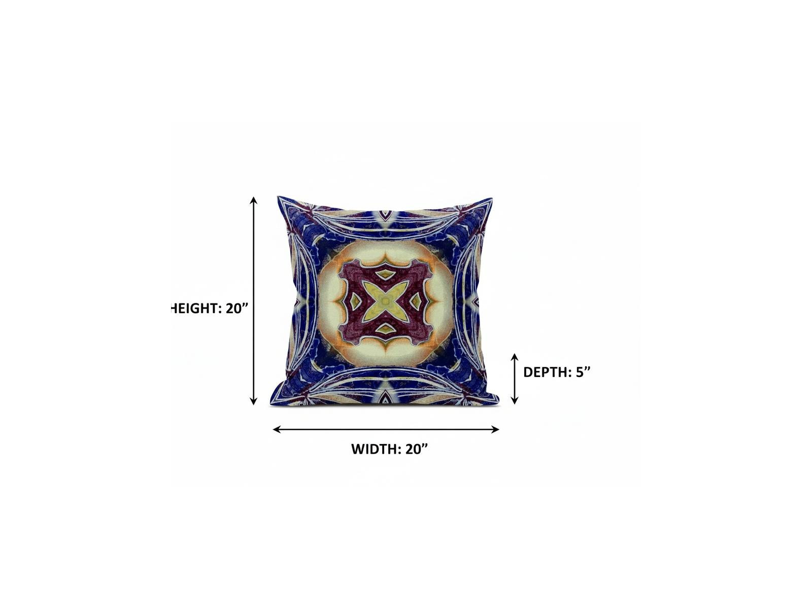 The saturated hues of this Indigo Cream Geo Tribal Suede Throw Pillow will enhance the visual appeal of your living space with a tribal essence. The captivating cream-toned center flaunts a tribal geo floral motif in plum and pale yellow color for a striking contrast over the distressed indigo blue base. The silky smooth and durable suede fabric gives the piece an appealing texture while ensuring enhanced durability to serve you for years. This blown and closed pillow is finished to perfection with a soft and durable polyfill insert for a fluffy appearance, making it an ideal accent piece in terms of fashion and functionality. If you want a bold and bright piece of décor to spruce up your living space, go for this tribal-inspired throw pillow that is sure to draw the attention of the guests. 20” x 20” x 5”