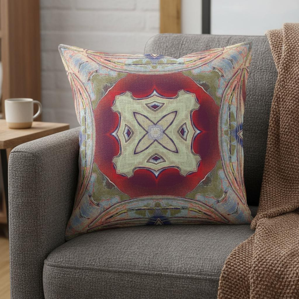 Designed in layers of soft and vivid tones, this Magenta Red Geo Tribal Suede Throw Pillow will be an attractive accent to enhance the style and elegance of your boho-chic decor. The geo floral tribal motif in magenta red and pale yellow is centered with splashes of sage green, peach, and blue around that is sure to allure the gaze and accentuate an outstanding visual treat with an ethnic refreshment. Made with top-quality silky suede fabric, it promises long-lasting durability to serve you well while providing a posh and sleek look to your interior decor. This eco-friendly throw pillow is highly fluffy, super cozy, and cuddly to touch due to the soft polyfill insert which ensures a comfortable resting experience. Brighten up your living space in a bohemian statement with this artistic throw pillow flaunted on the couch, sofa, or bed. 18” x 18” x 5”