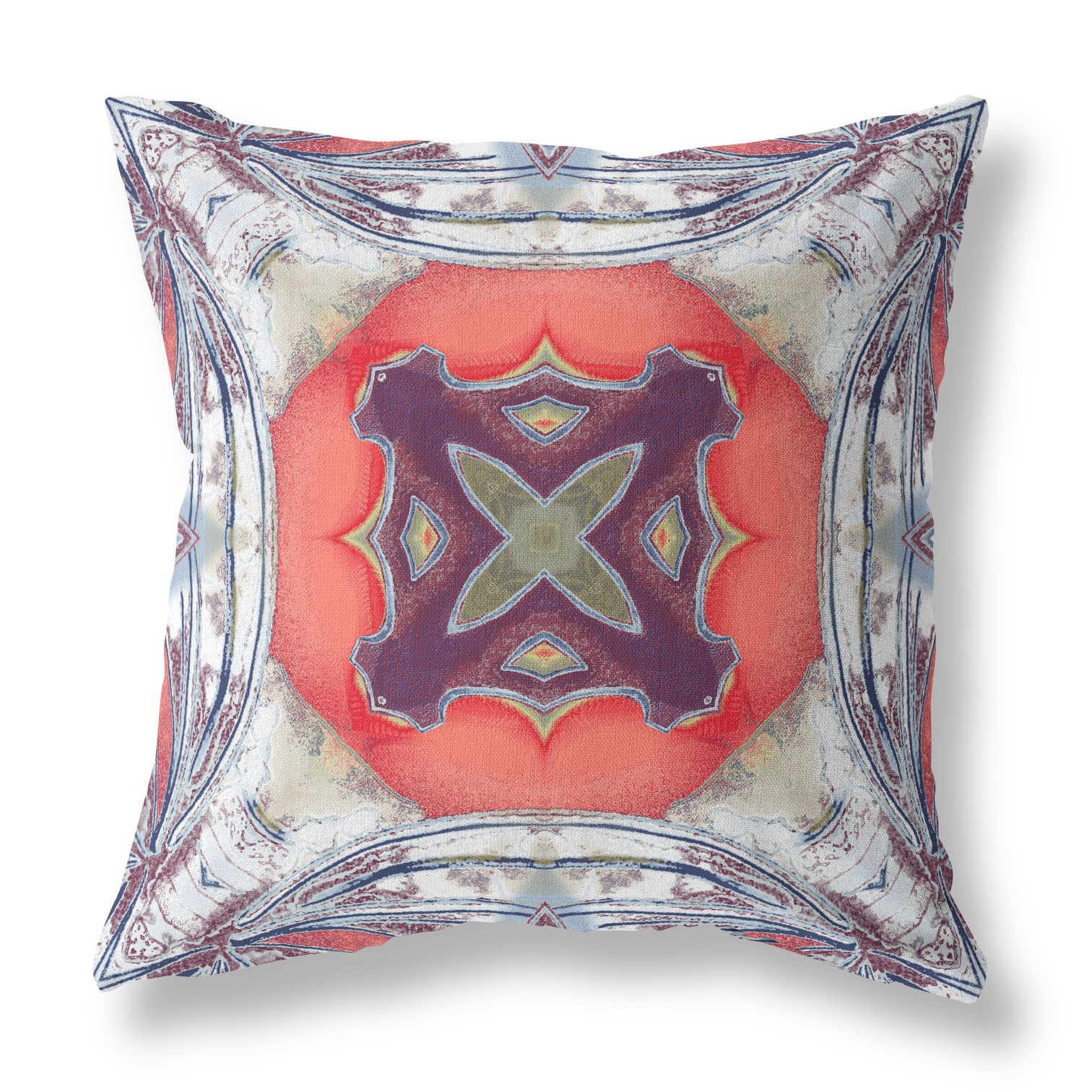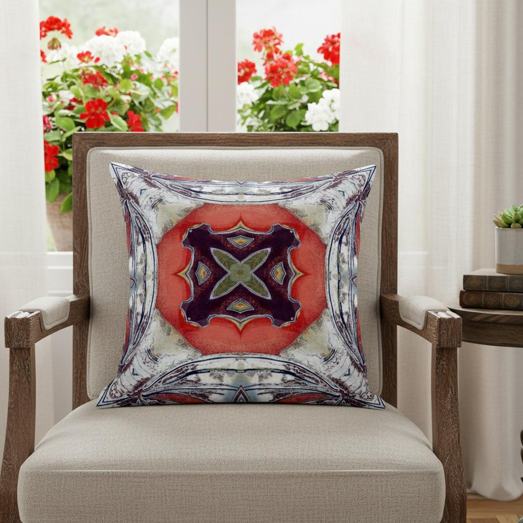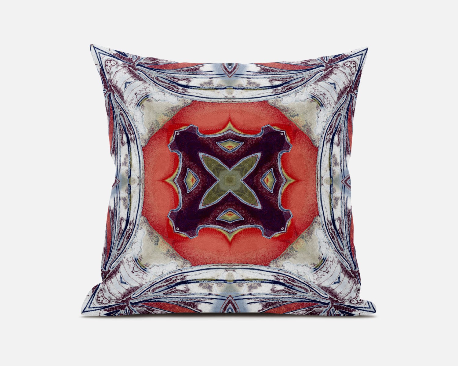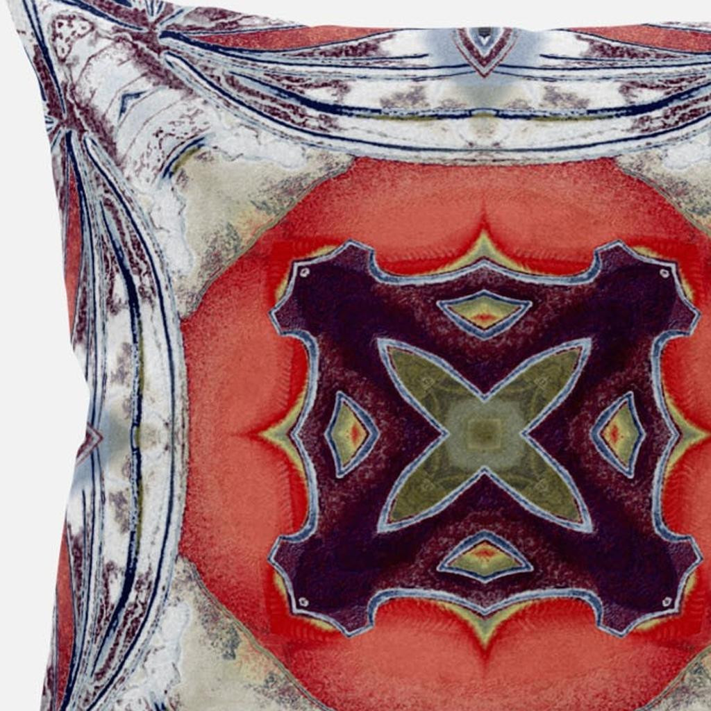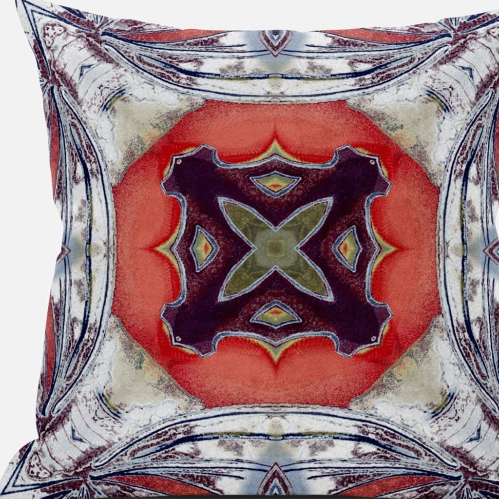 The intense colors against the traditional print of this eye-catching Gray Peach Geo Tribal Suede Throw Pillow make it the ideal décor piece to induce a boho-chic vibe into your home. The curved gray strokes over a distressed white base lays a perfect foundation to flaunt the central shape in peach that holds an enchanting plum-toned tribal motif for visual intrigue. The deluxe suede fabric featured on the throw pillow gives it a premium feel while also being durable to last for a long time. The plush look and fluffy nature come from the regular polyfill insert that provides a comfortable platform for your head and neck to maximize relaxation. Give your living room an alluring tribal aesthetic with this stunning decorative throw pillow flaunted amidst your modern or bohemian décor. 16” x 16” x 5”