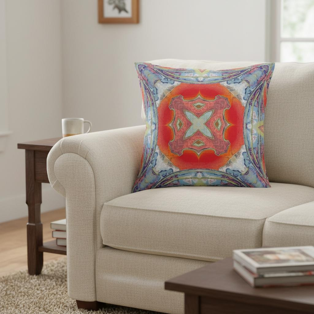 Highlight your living space with the vibrant colors of this Blue Orange Geo Tribal Suede Throw Pillow that strikes a perfect balance between cool and warm tones. The blue base resembles dried strokes of watercolor giving a sense of serenity to the piece while the circular center motif in vivid shades of orange creates a striking contrast adding a cheerful vibe to the pillow. This decorative pillow is made from premium quality leather-like suede fabric for enhanced durability and utmost softness, making it a plush accent piece for your home. To ensure a fluffy look with a soft and cozy feel, this pillow is blown and filled with a durable polyfill insert for a comfortable experience. If you want a bright pop of color in your modern home, opt for this exquisite throw pillow that harmonizes traditional tribal prints and exuberant colors to breathe life to your boho-chic ensemble. 20” x 20” x 5”