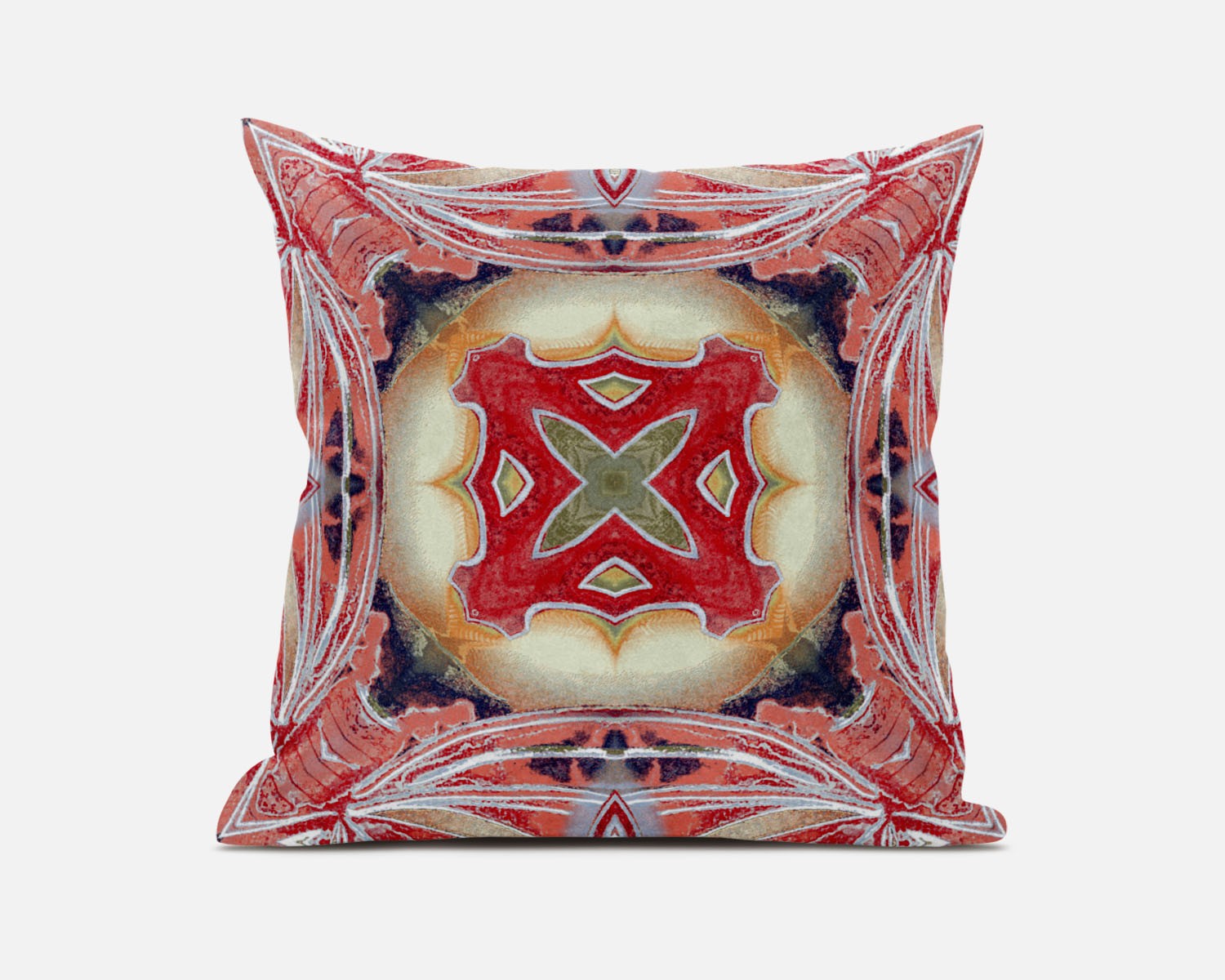 The eclectic blend of rosy colors and geometric patterns in this beauteous Peach Red Geo Tribal Suede Throw Pillow will infuse a bohemian aesthetic into your modern décor. The intrinsic patterns in a circular gradient of bright cheerful red and peach tones give this pillow a charismatic appeal which only adds to the magnetism of this decorative piece. The high-quality suede fabric gives this pillow a luxurious appearance with a silky smooth finish while assuring long-lasting durability to serve you well in the future years. This decorative throw pillow features a soft polyfill insert which makes the piece super fluffy and comfortable to support your neck and back when you lean on it. If you want a subtle yet colorful addition to your contemporary abode, opt for this tribal-inspired throw pillow that illustrates unique patterns in warm-toned hues to set an inviting tone in the room. 18” x 18” x 5”